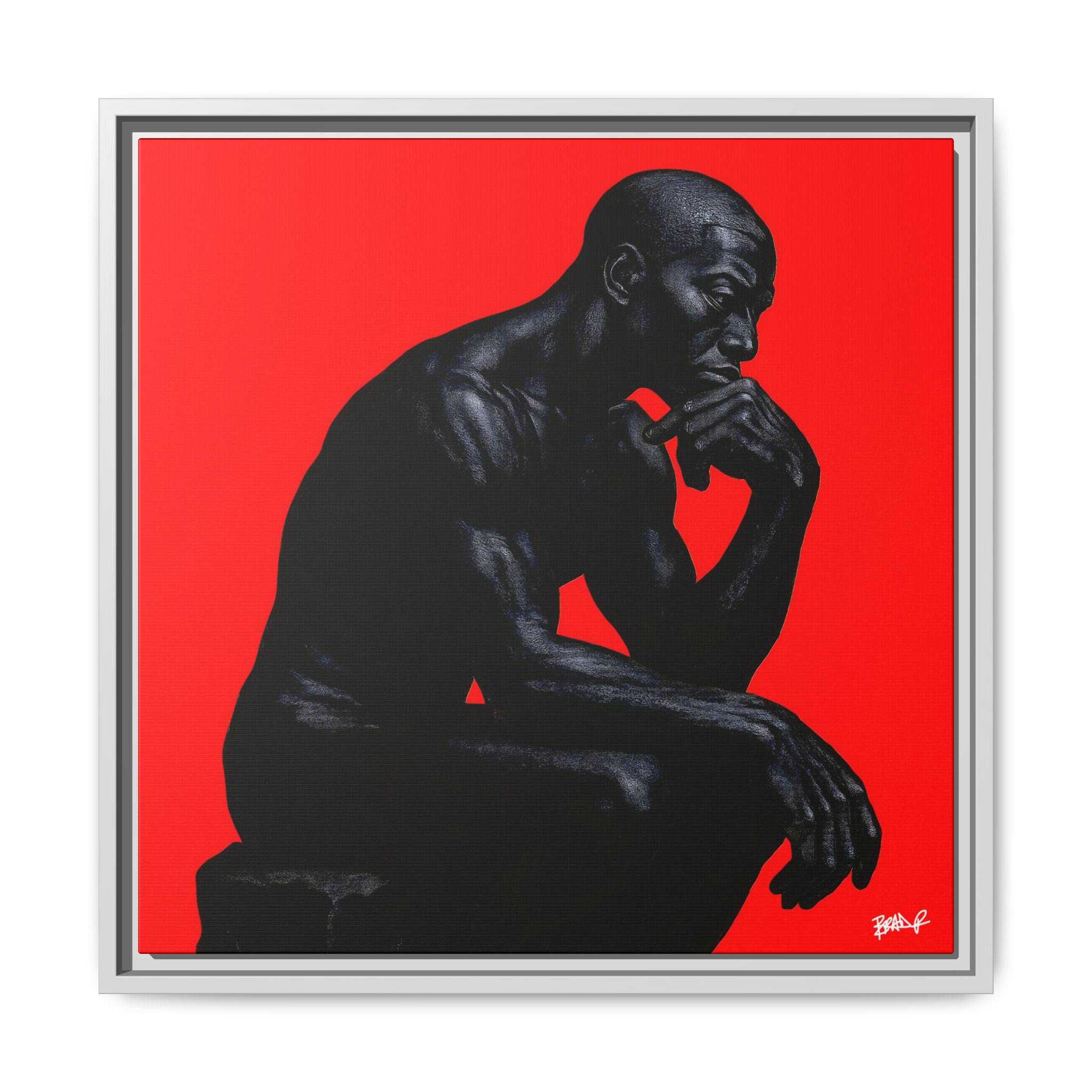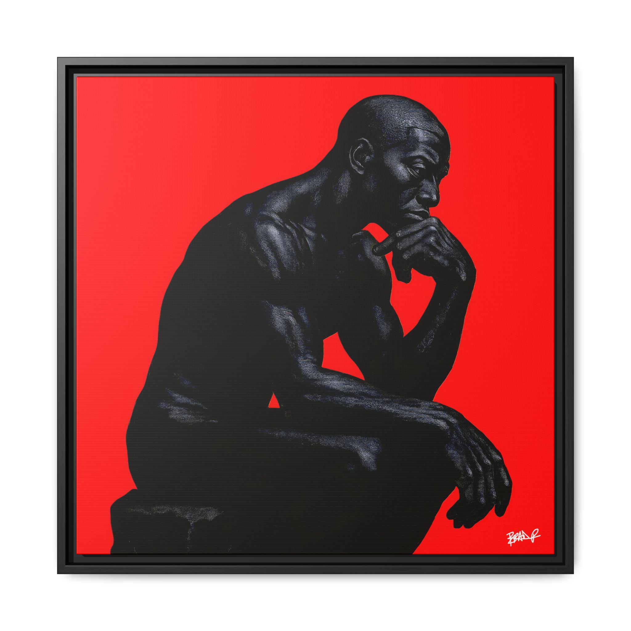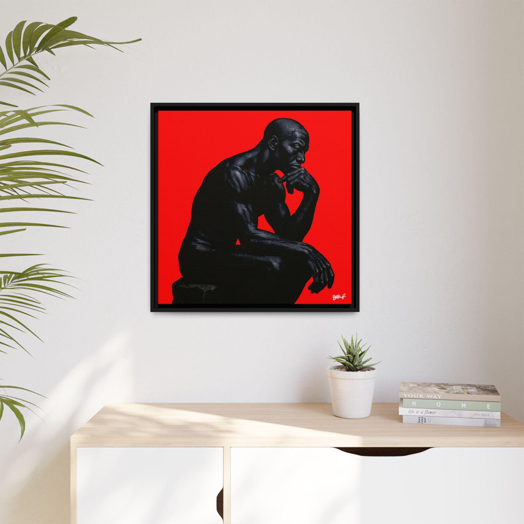 This reimagining of Rodin’s iconic form channels Black intellect, endurance, and fire. Cast in the gleam of obsidian, the figure’s stillness becomes its own kind of thunder—an unspoken testament to survival and self-possession. Set against a searing red blaze, the work transforms contemplation into combustion, silence into defiance. It is a meditation on history carried and futures forged, where the weight of thought burns as brightly as the horizon it envisions.