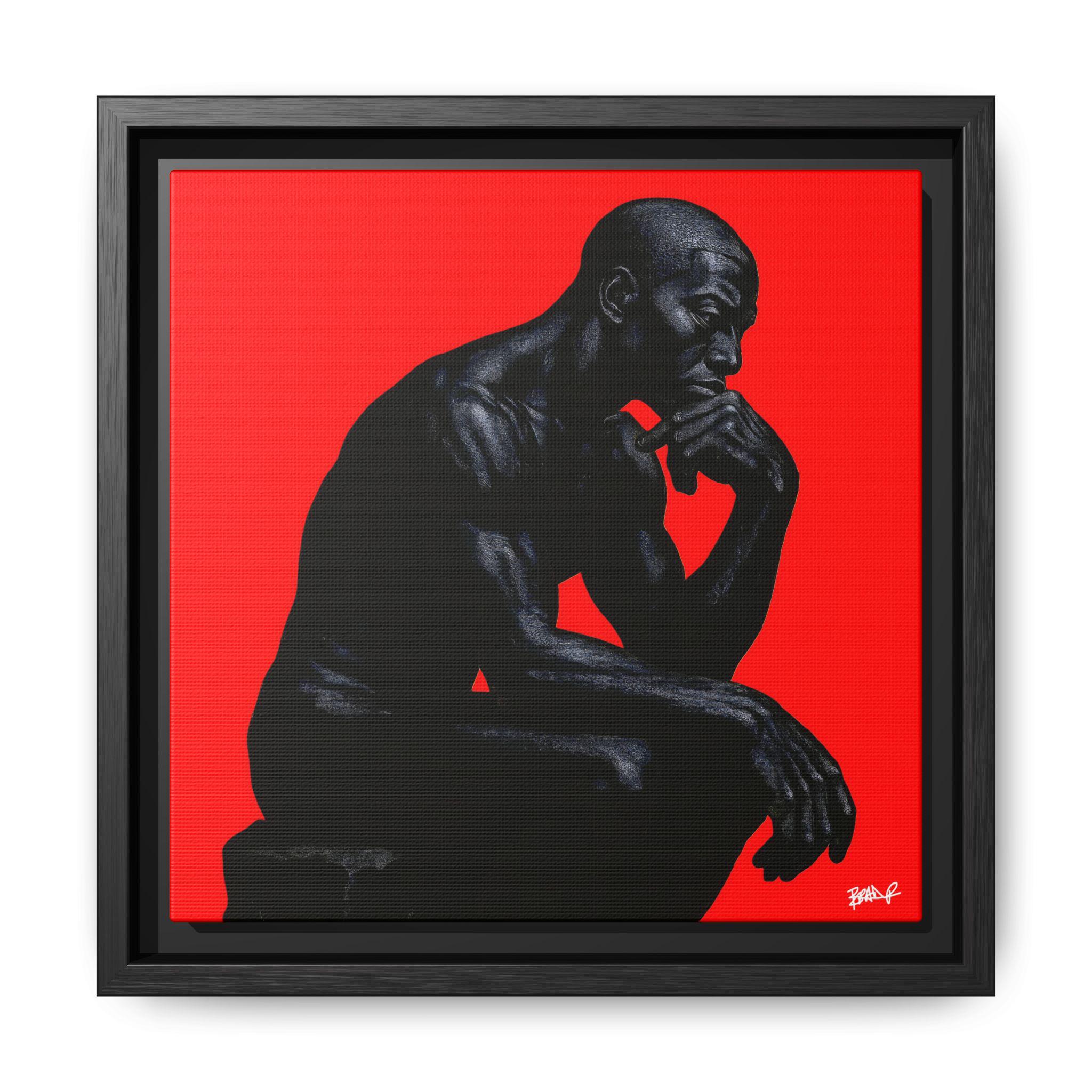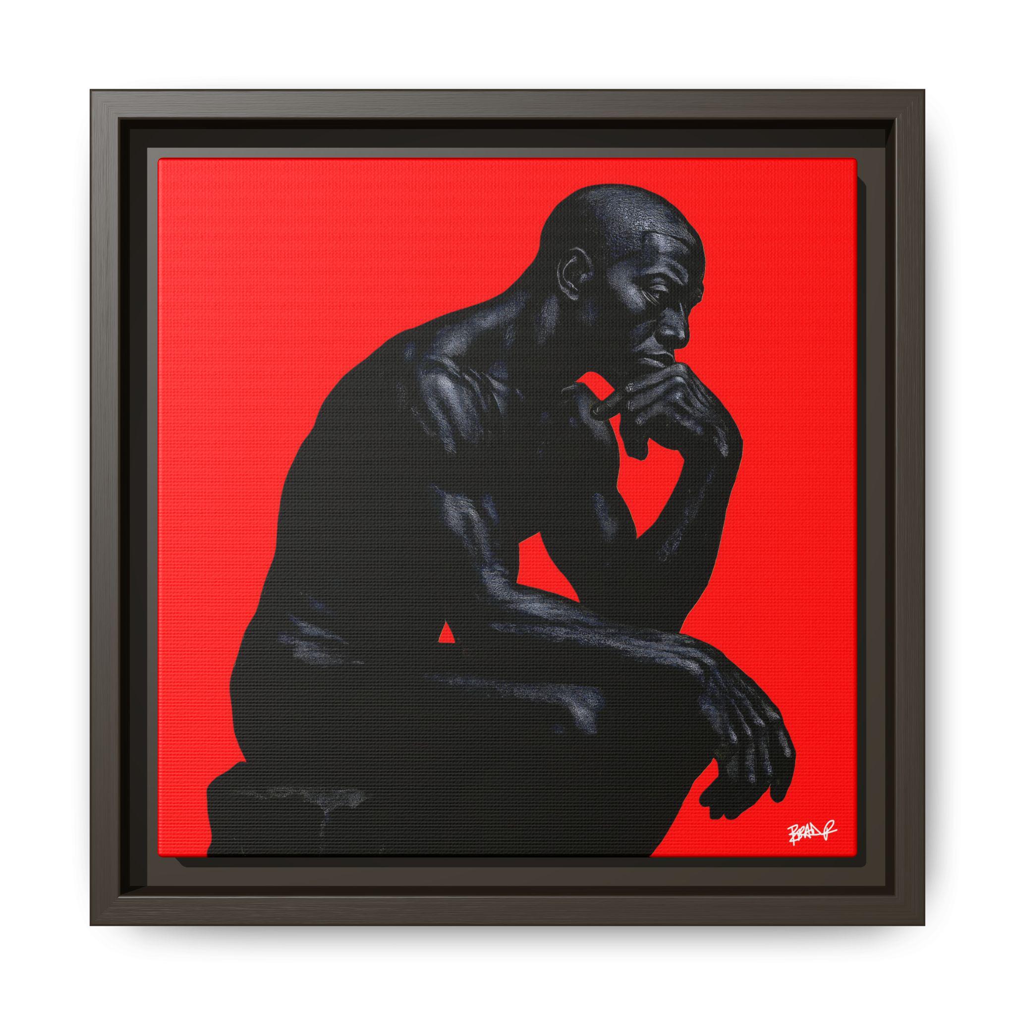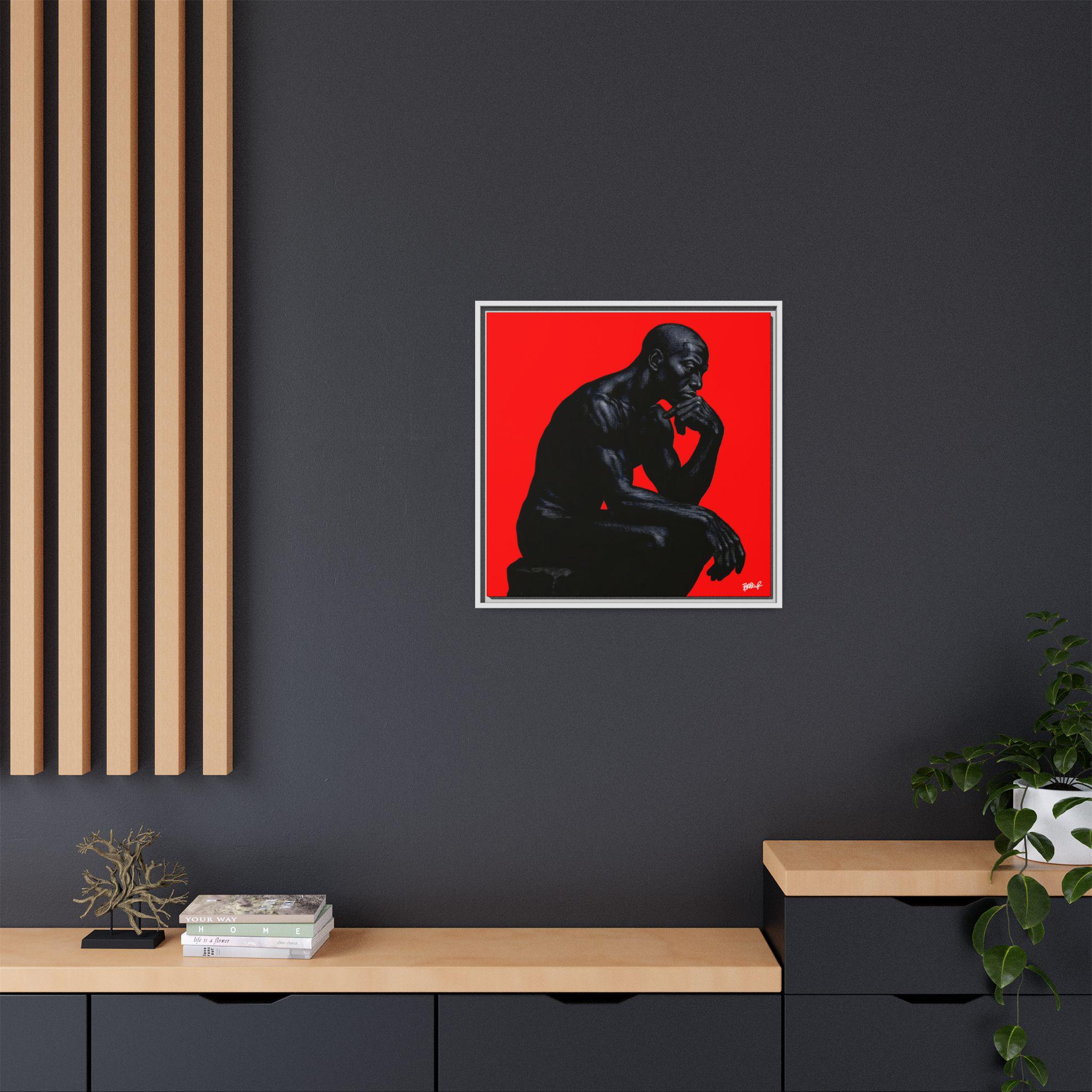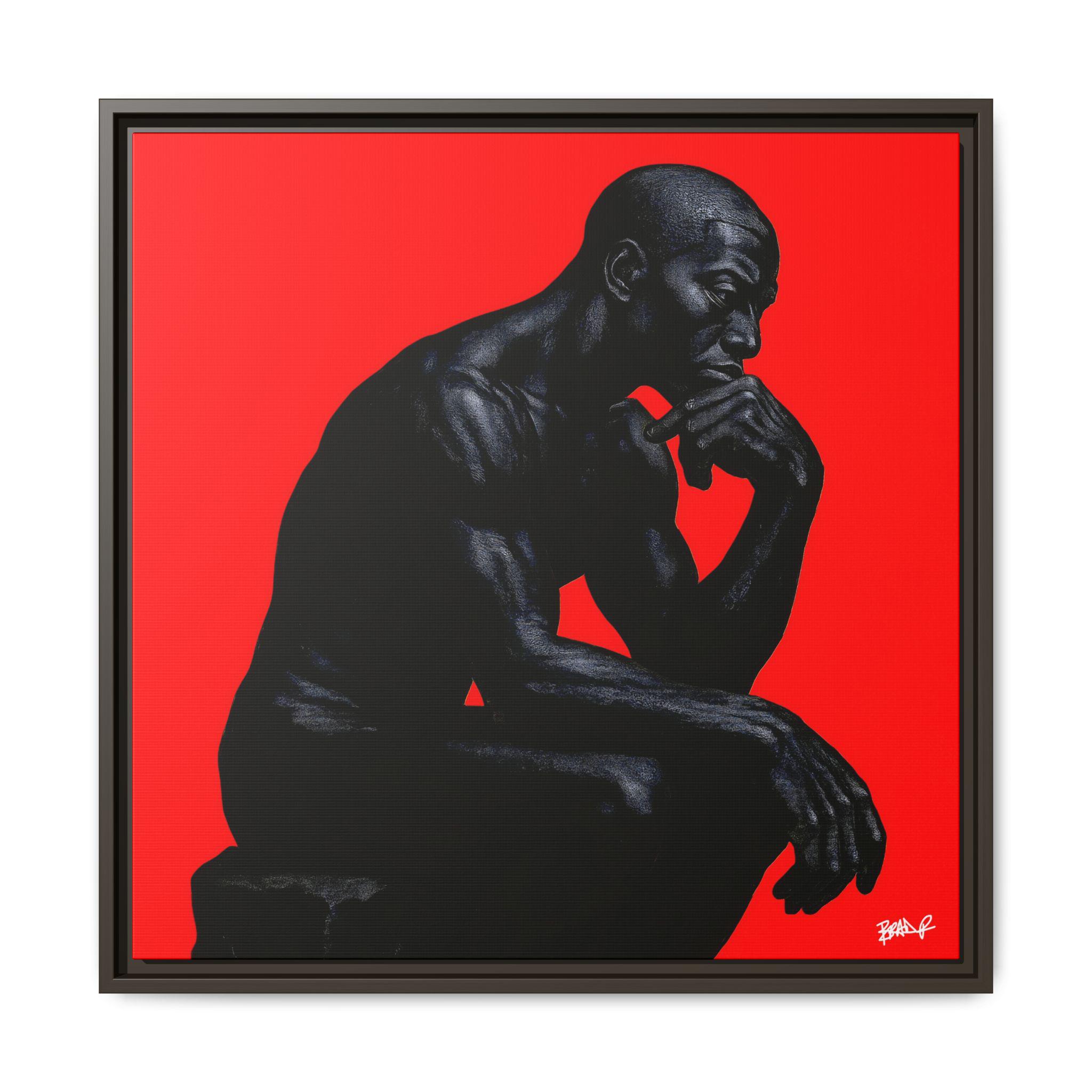 This reimagining of Rodin’s iconic form channels Black intellect, endurance, and fire. Cast in the gleam of obsidian, the figure’s stillness becomes its own kind of thunder—an unspoken testament to survival and self-possession. Set against a searing red blaze, the work transforms contemplation into combustion, silence into defiance. It is a meditation on history carried and futures forged, where the weight of thought burns as brightly as the horizon it envisions.