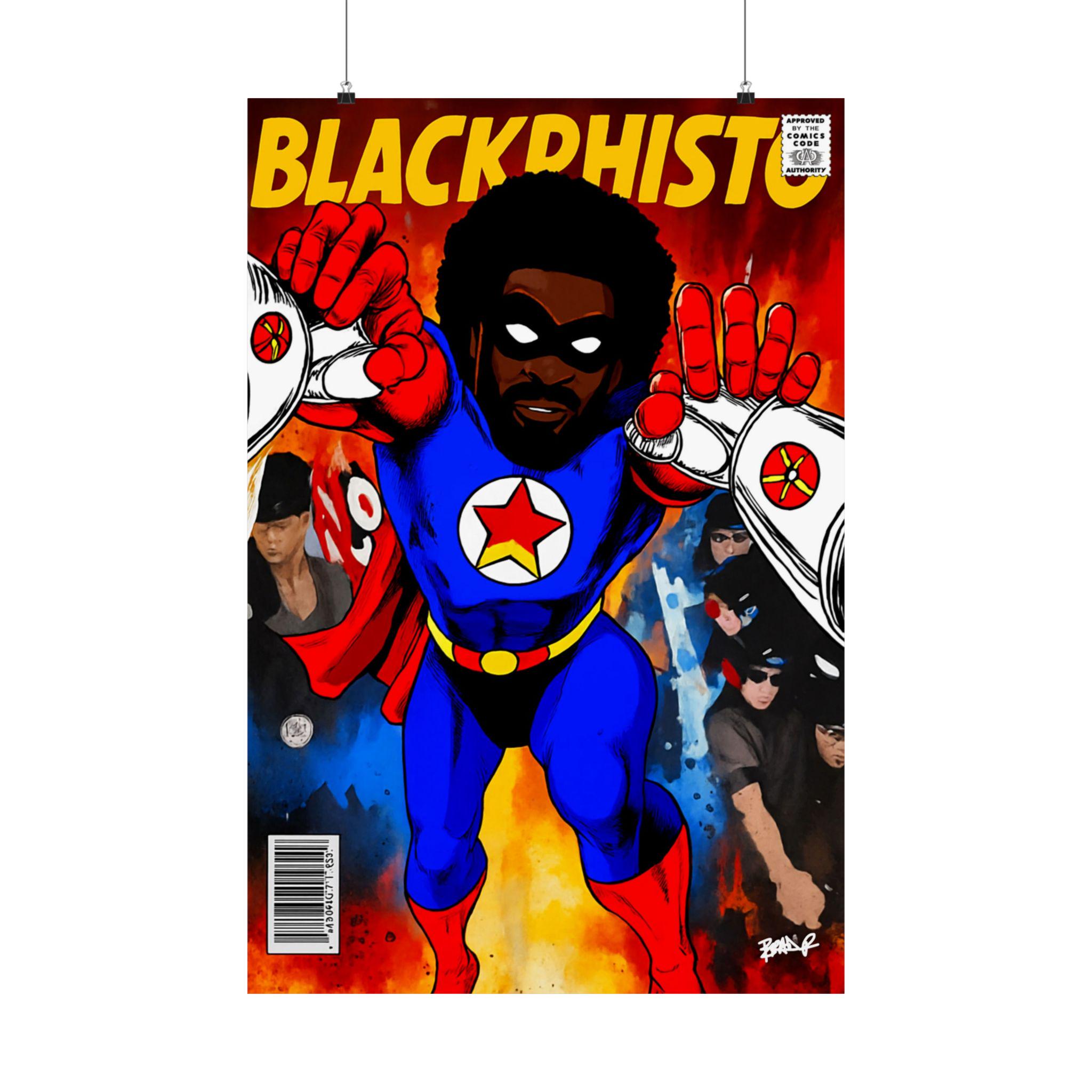 Blackphisto: The Strike Unseen is both poem and portrait — a declaration of defiance rendered in comic book form. Born from fire and forged in struggle, Blackphisto embodies the rage, resilience, and hope of generations history tried to erase. His fists are verdicts, his mask a mirror, his body stitched with the echoes of the enslaved and the fallen. Where power brands resistance as menace, the people call him salvation.