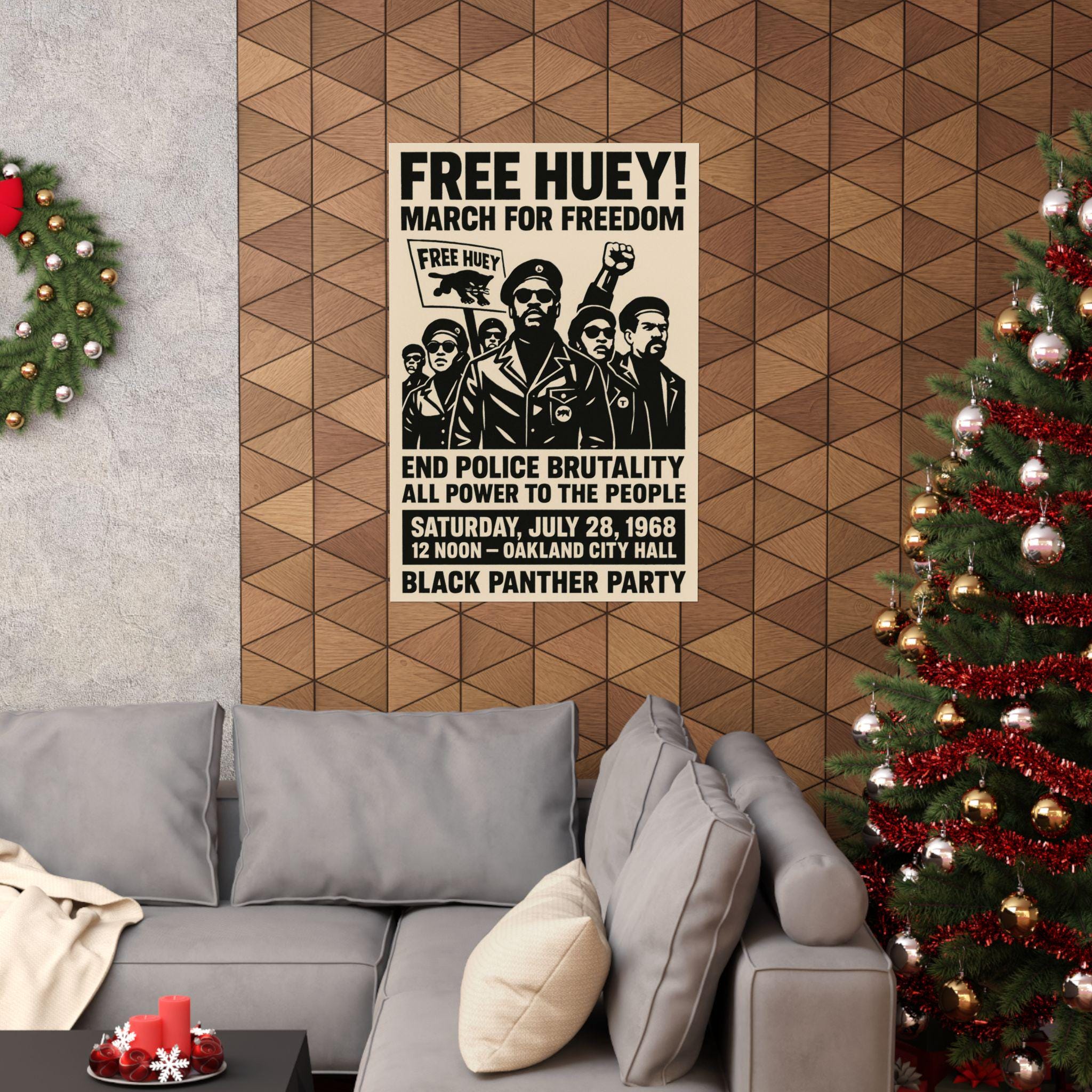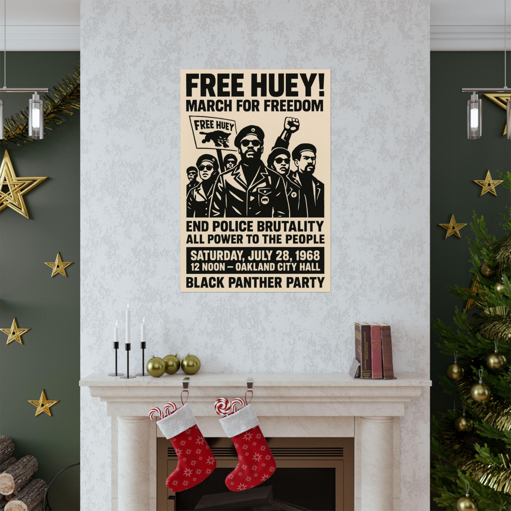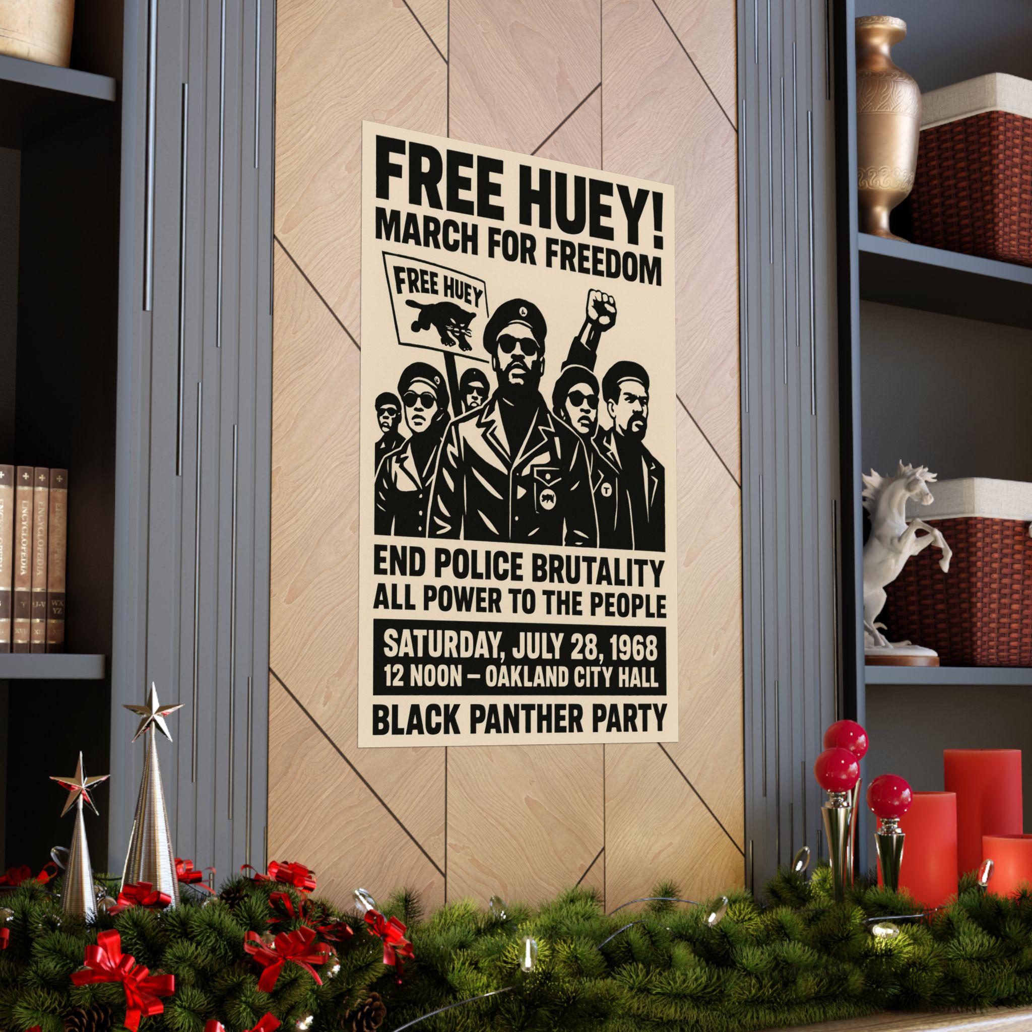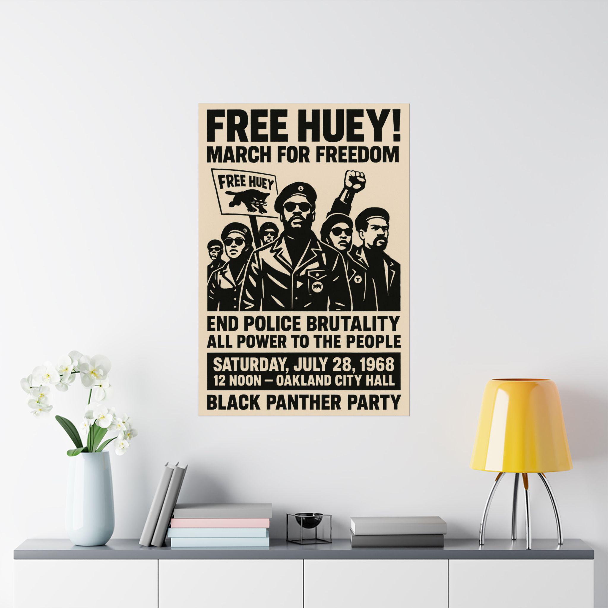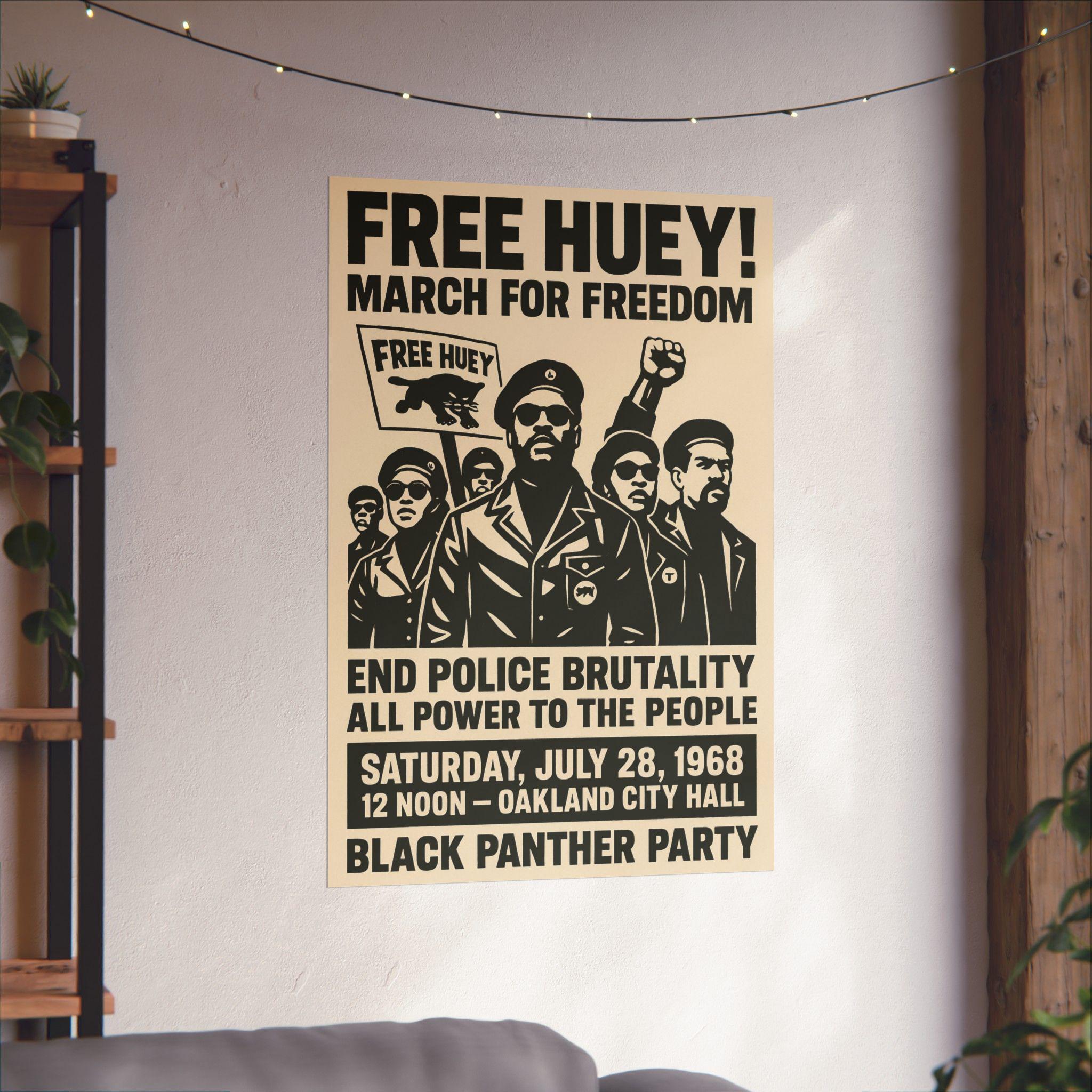 This Matte Vertical Poster featuring the Free Huey Black Panther Party March for Freedom design exudes a powerful and activist vibe. Perfect for history buffs, social justice advocates, and those passionate about civil rights movements. Ideal for decorating home offices, libraries, or classrooms. Relevant for Black History Month, Civil Rights Day, and political activism events.