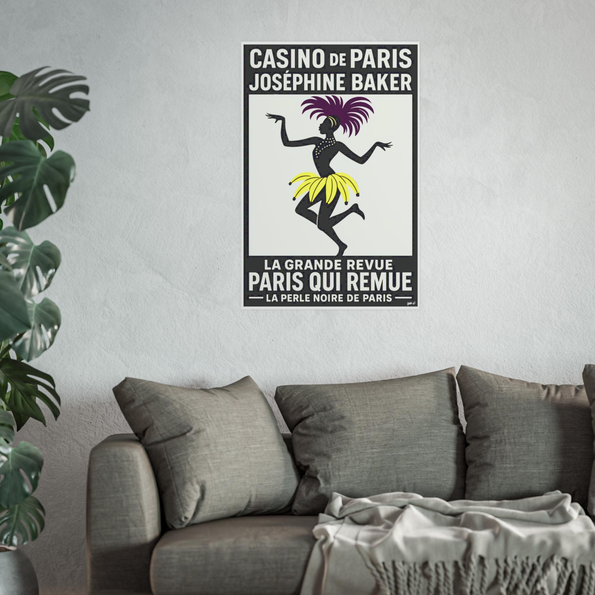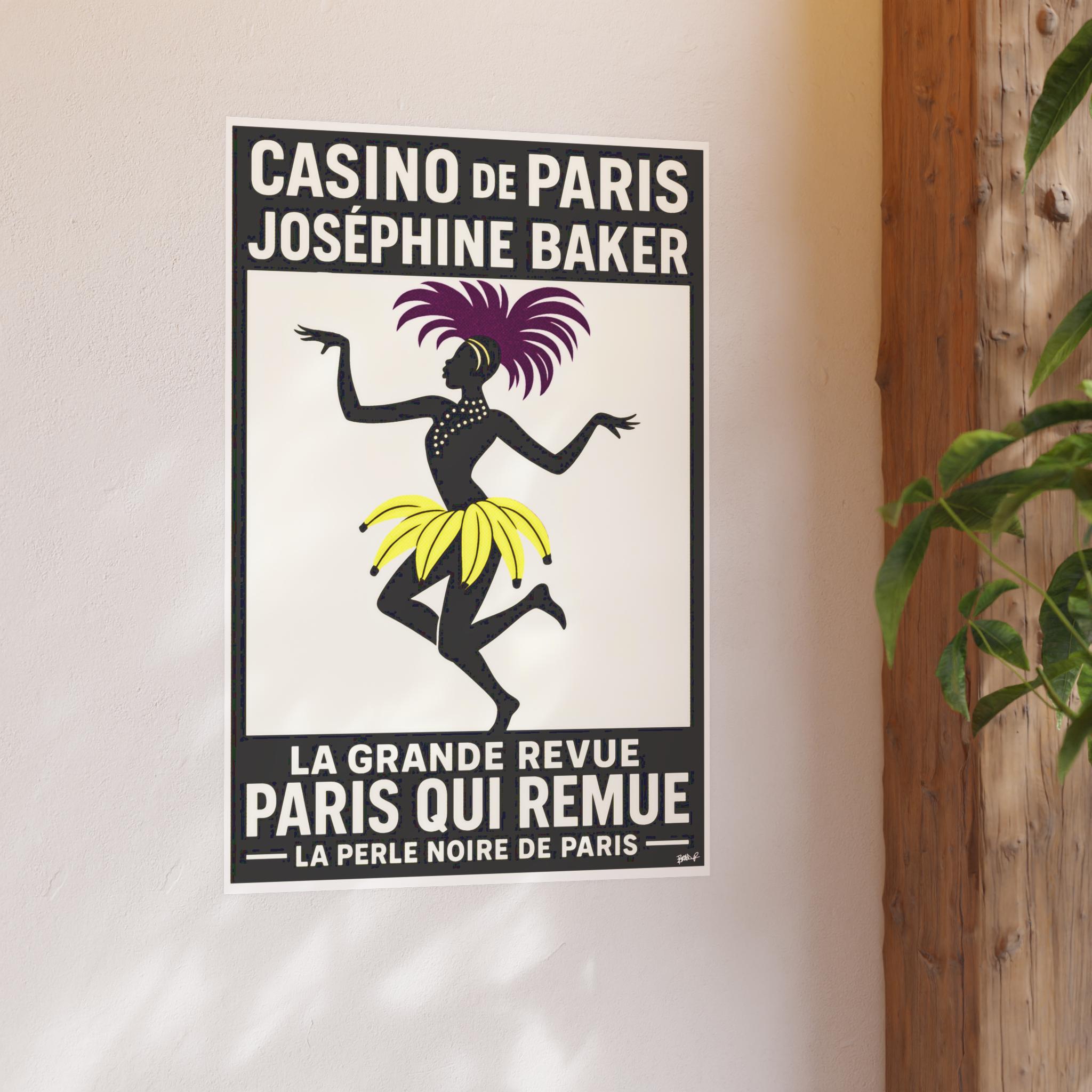 Embrace the vintage charm with this Josephine Baker Vintage Poster. Featuring vibrant colors and available in satin or archival matte paper options, this poster brings a nostalgic vibe to any space. Perfect for fans of Josephine Baker or vintage art collectors, this poster is ideal for decorating a home or office. Relevant for birthdays, housewarmings, and art lovers.