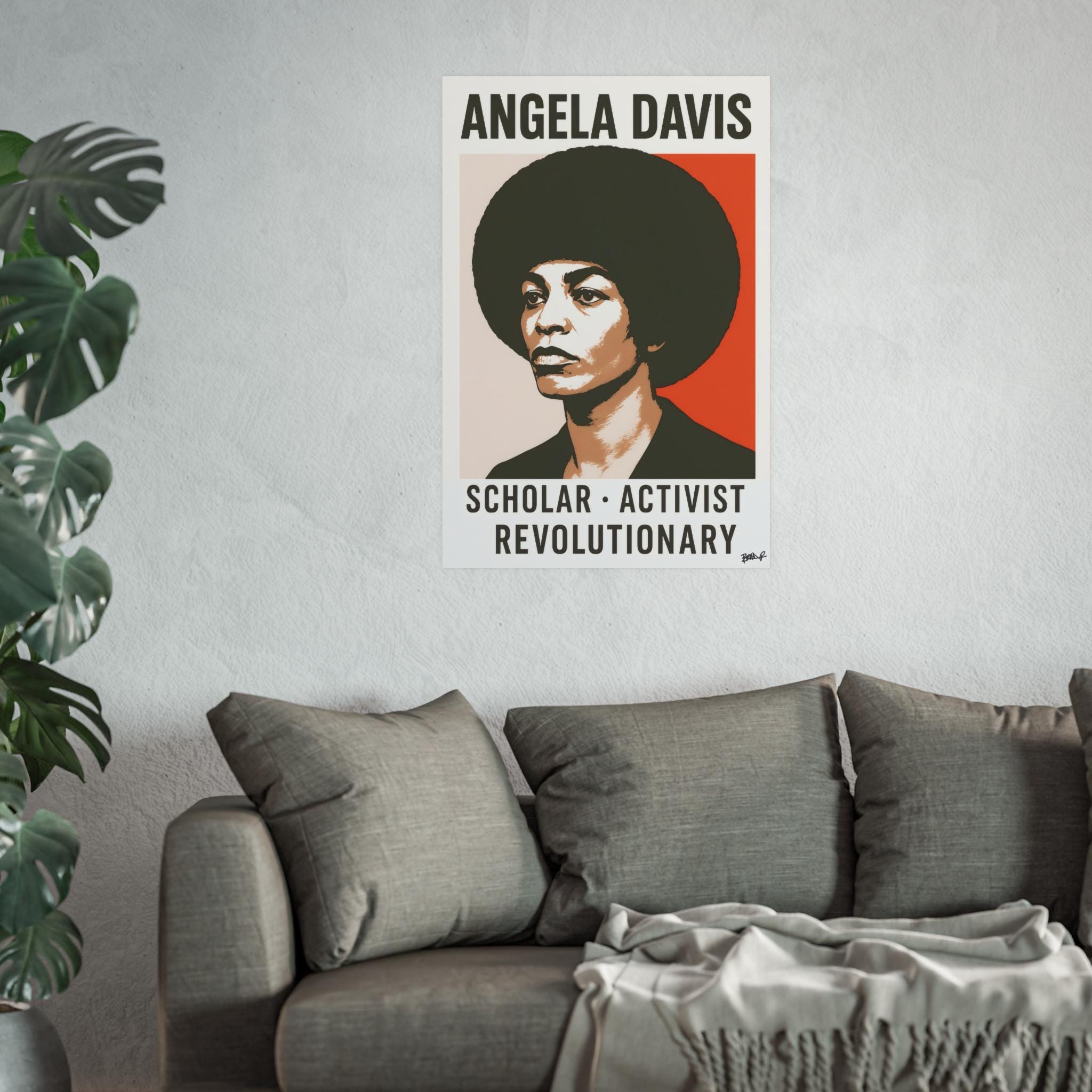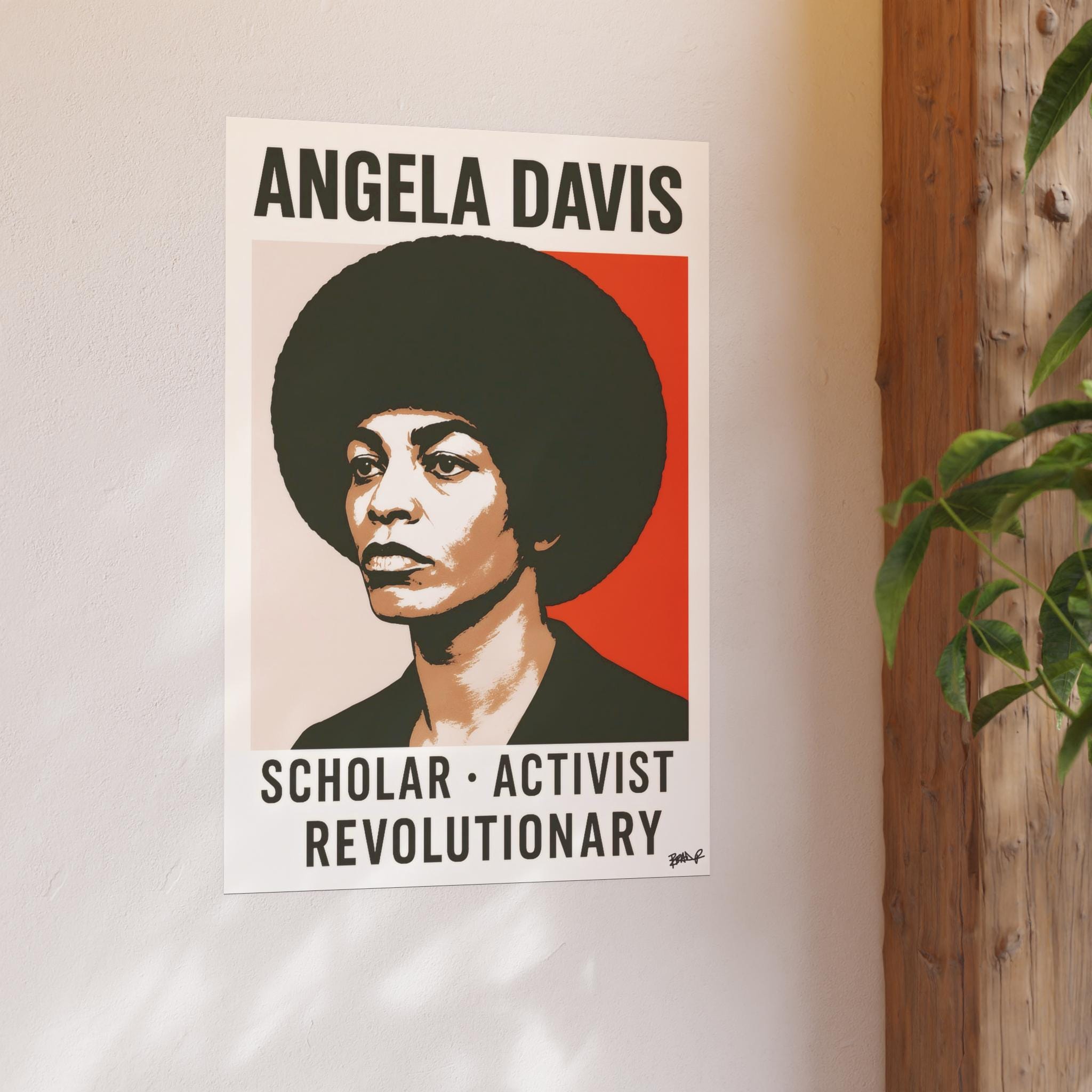 Rendered in a bold, contemporary design with clean lines and vibrant accents, this poster captures Angela Davis’s strength and legacy as a Scholar, Activist, and Revolutionary. Perfect for classrooms, home offices, studios, or gallery walls, it makes a statement that is both minimalist and deeply impactful.