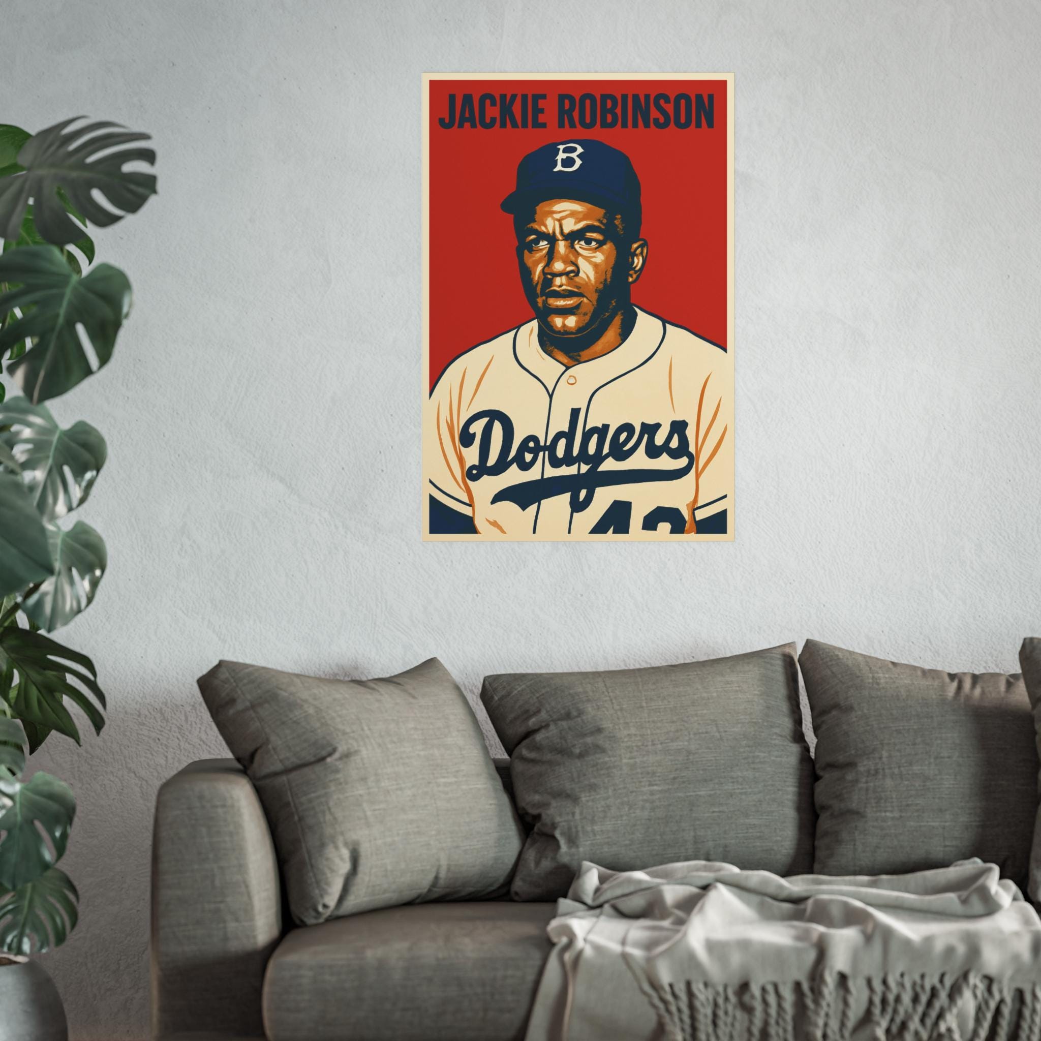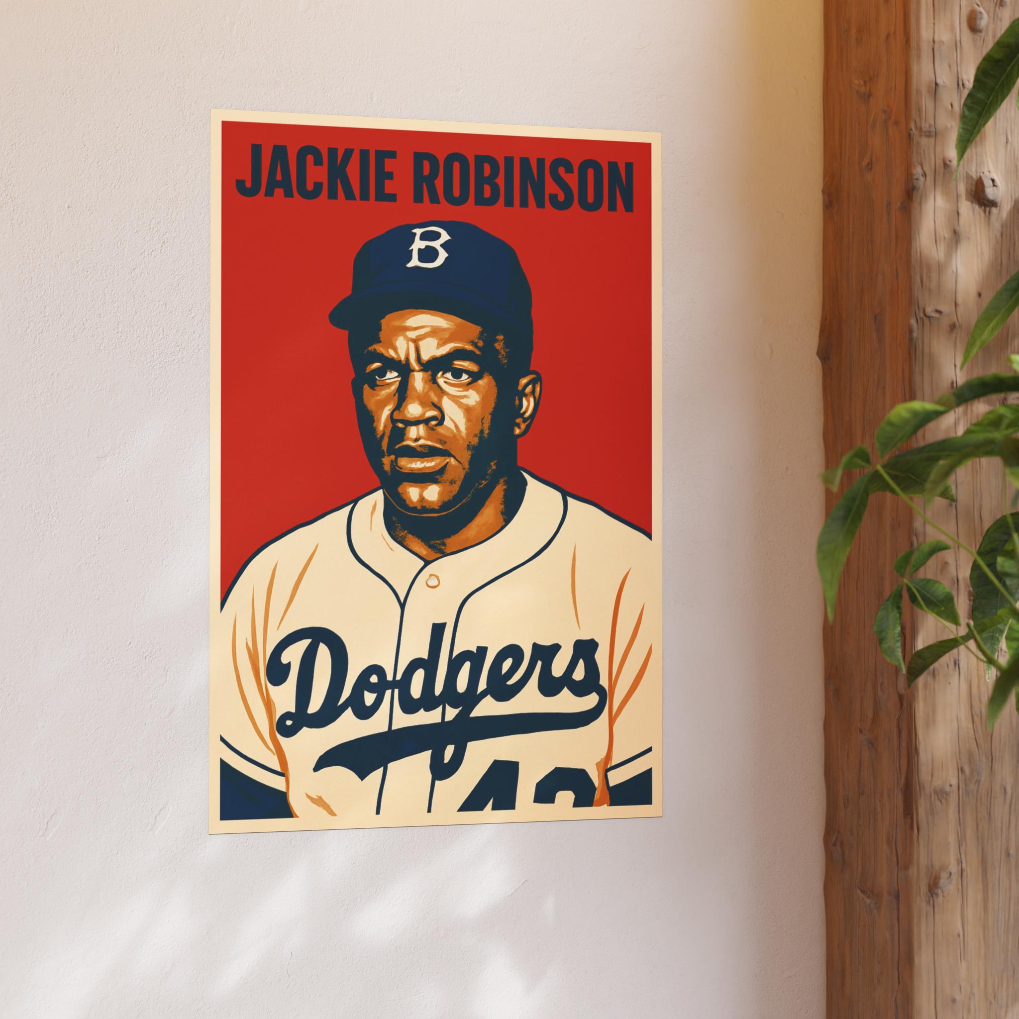 This bold, posterized portrait of Jackie Robinson, the man who shattered baseball’s color line in 1947, honors not just an athlete — but a movement.