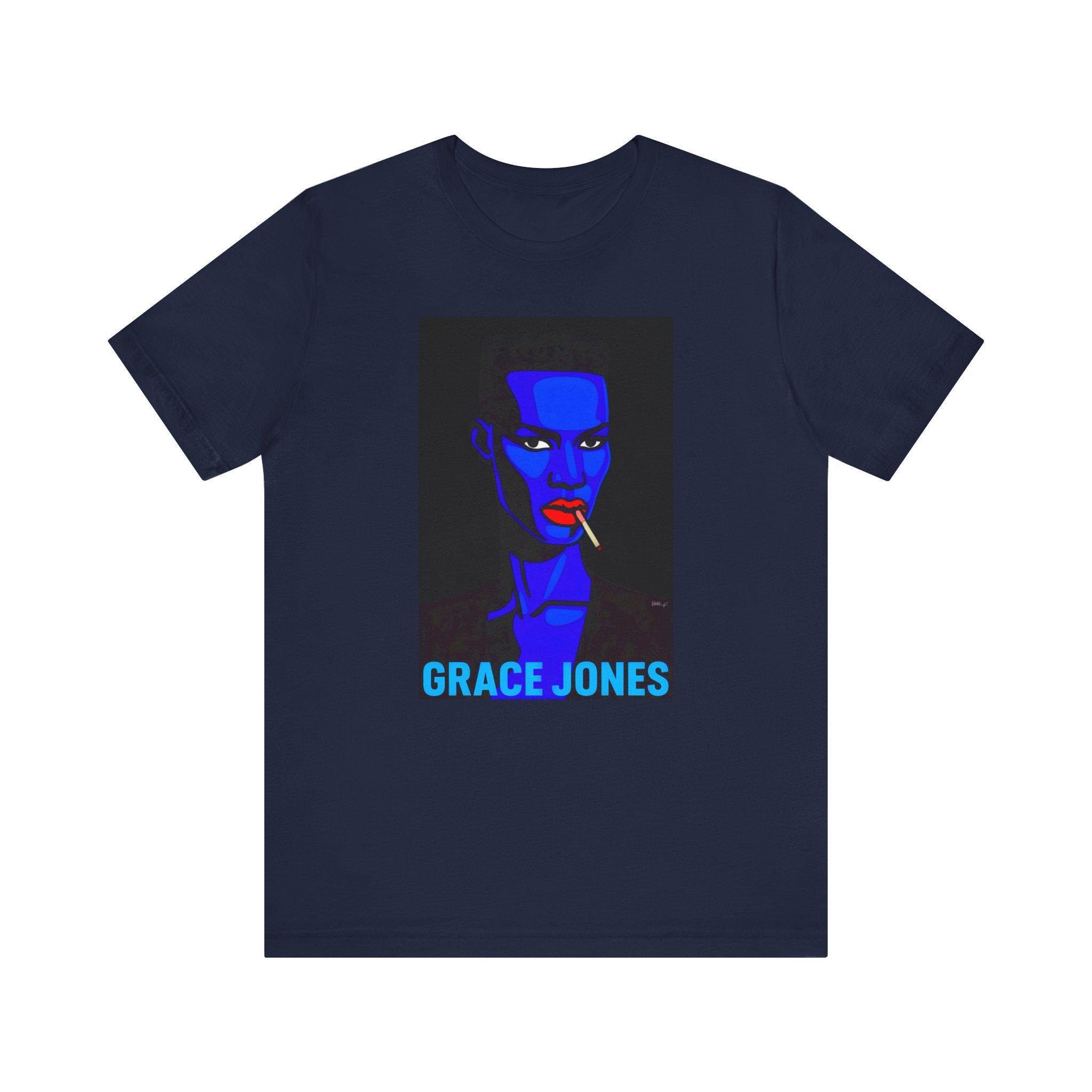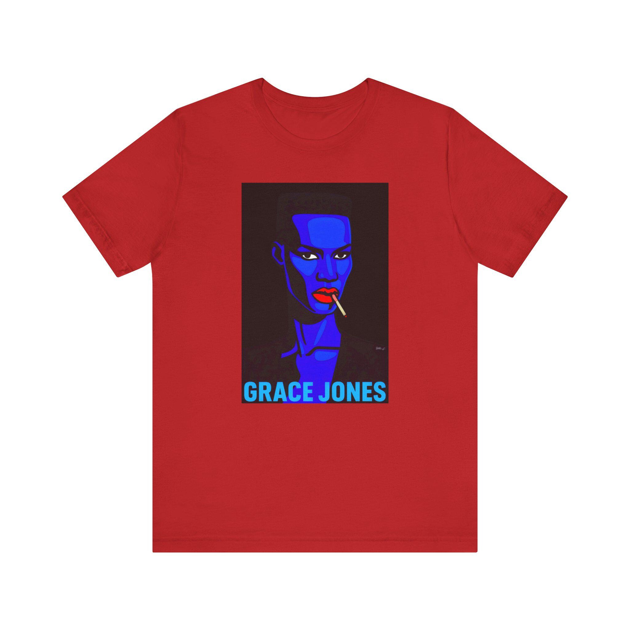 Rendered in deep electric blues with vivid red accents, the portrait captures Grace’s legendary edge — sleek, sculptural, and fearlessly original. The graphic composition draws from club-era aesthetics and fine-art poster design, making it the perfect statement piece for any space that values boldness, individuality, and culture.