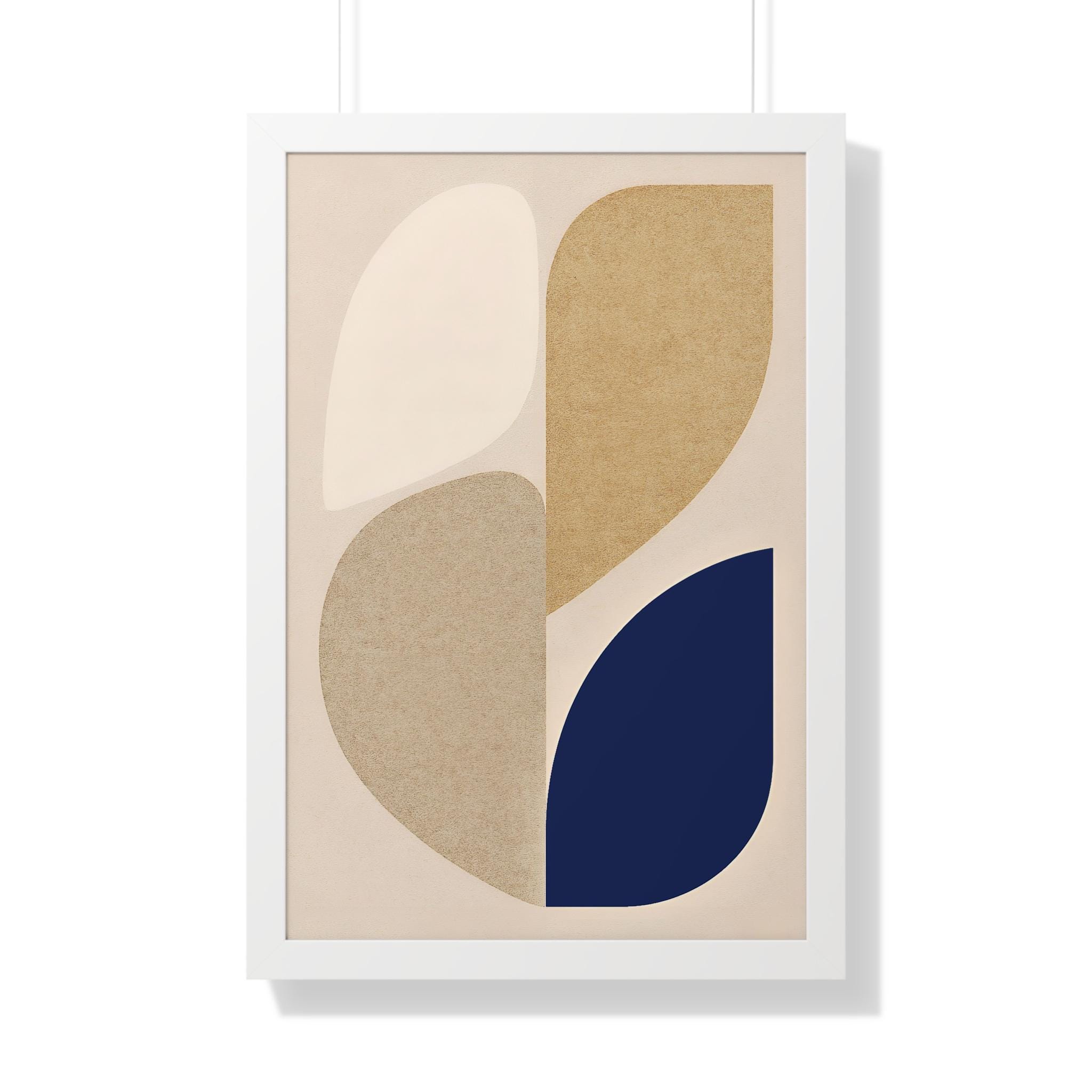Balance in Bloom merges natural fluidity with structured form. Cream, sand, and deep navy hues interplay to create a sense of poised motion — as if geometry itself were alive. This elegant piece complements both creative workspaces and curated modern interiors.