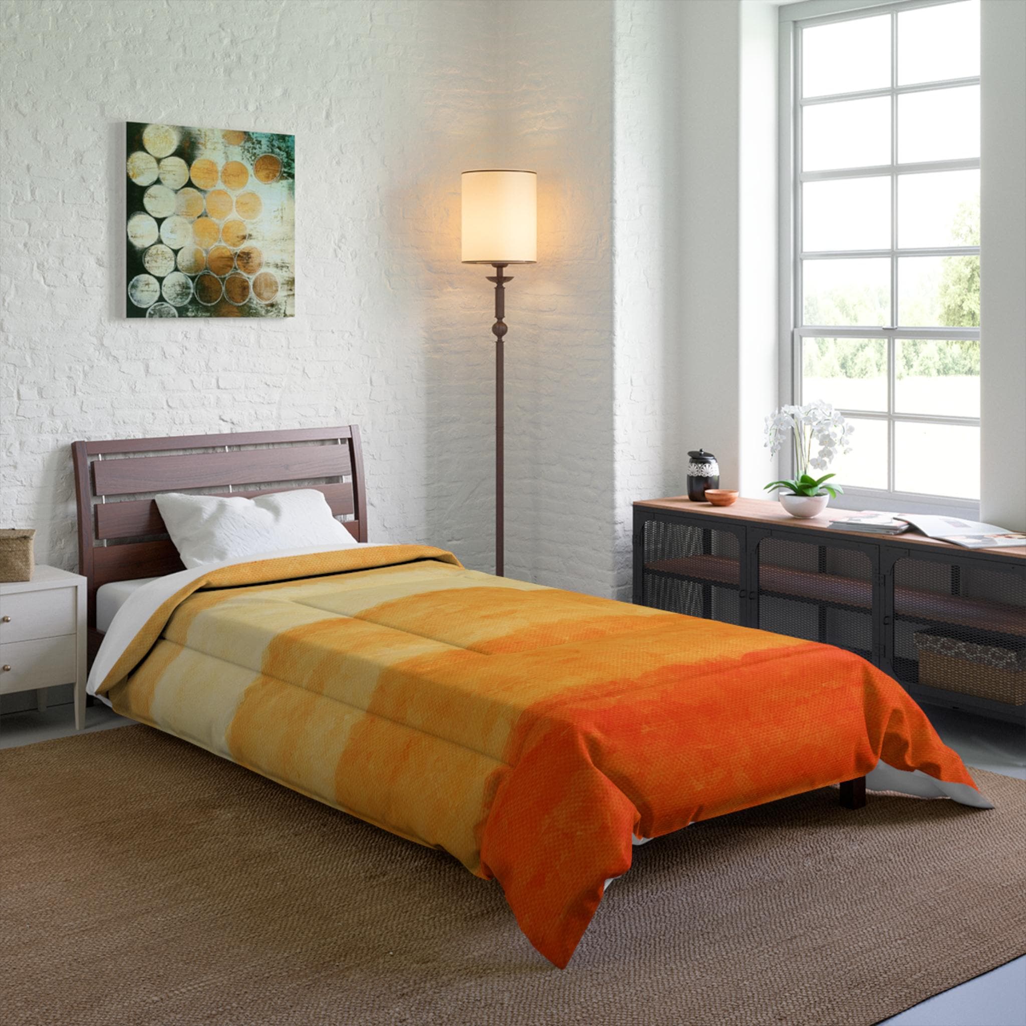 A homage to the quiet vastness of desert light. Desert Haze blends earthen warmth with soft diffused tones, evoking sunbaked landscapes and still afternoons. Perfect for bedding, travel accessories, or art prints that invite grounded calm into your space.