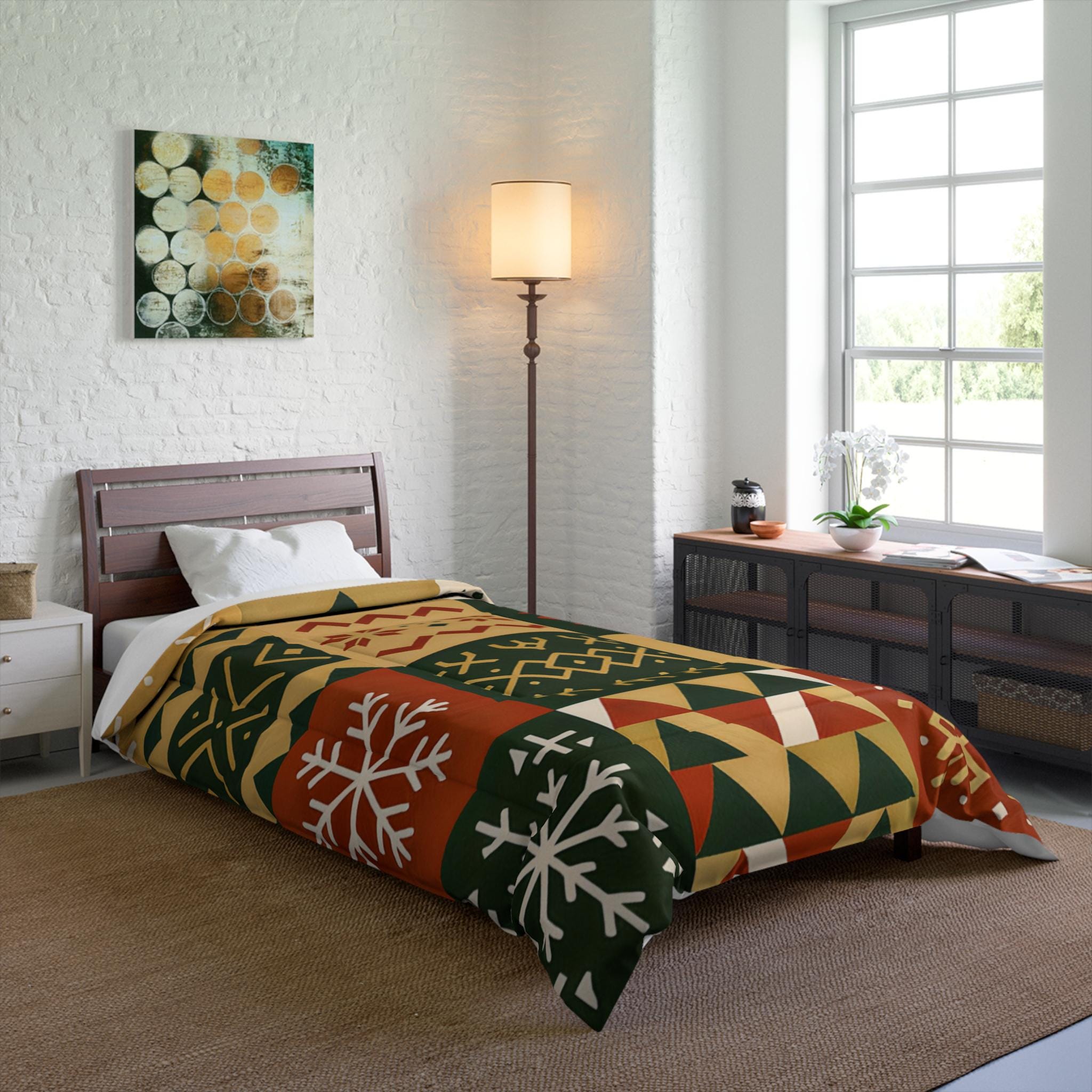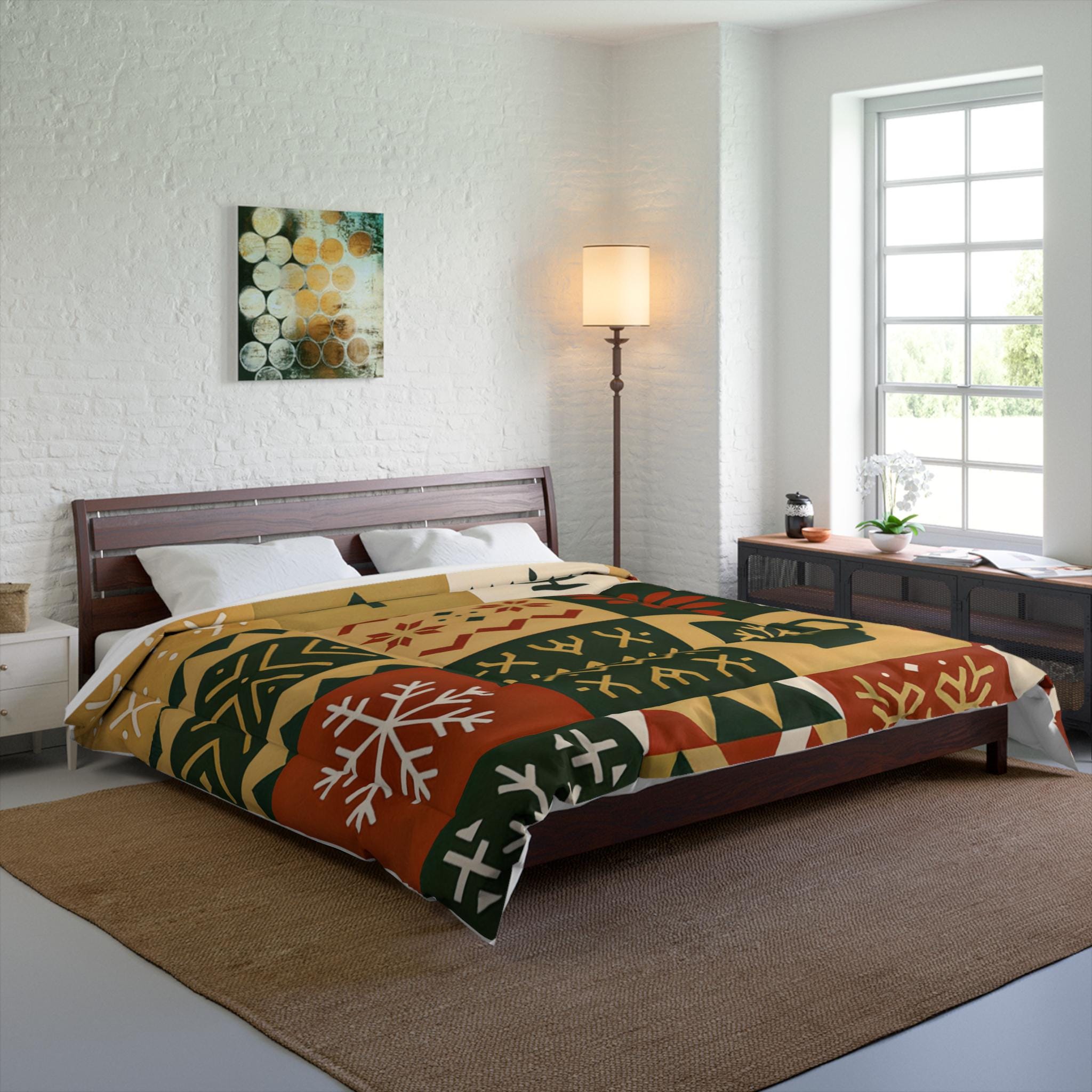 With quilt-inspired geometry and heritage motifs, Noel Soul I brings together the warmth of traditional craft and the richness of modern design. Earthy tones of pine, cranberry, and mustard gold weave together birds, trees, and snowflakes in a rhythm that feels both nostalgic and contemporary.