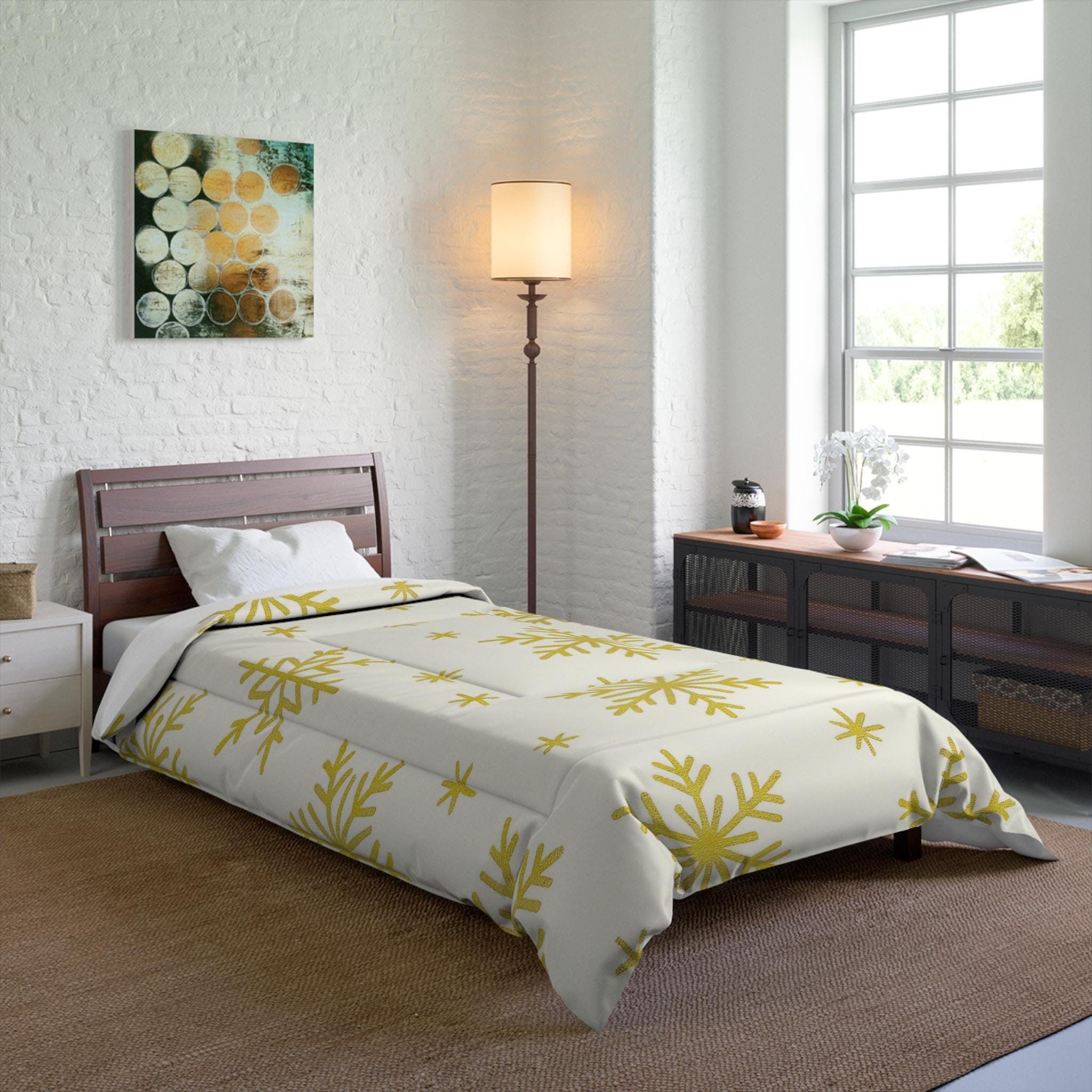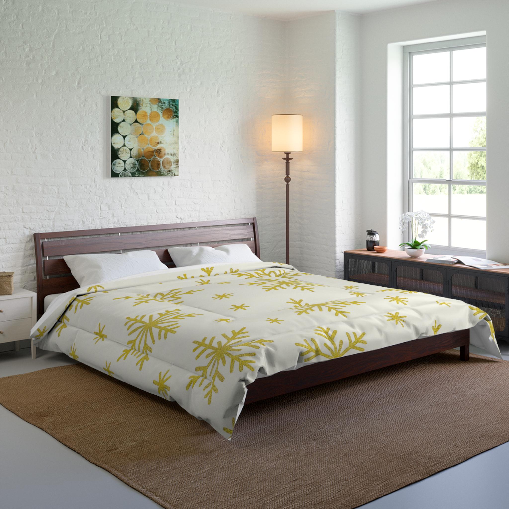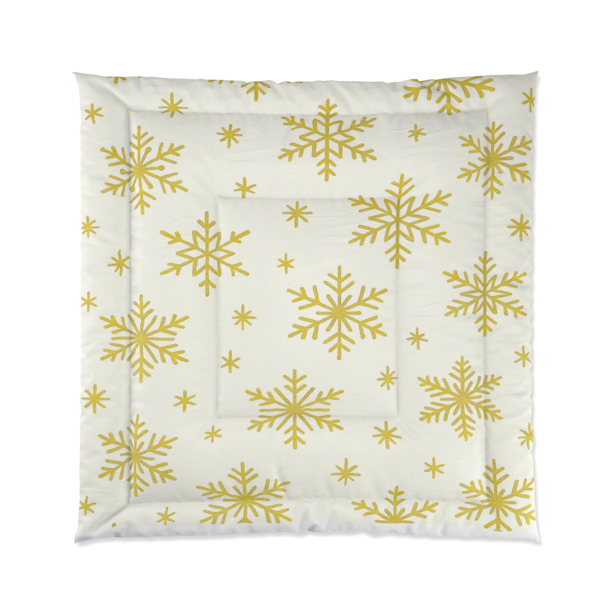 Subtle luxury meets seasonal charm in Golden Flurries. Delicate gold snowflakes drift across a soft cream background, bringing a whisper of winter magic without overpowering your space. Ideal for neutral interiors or anyone who loves quiet holiday elegance.