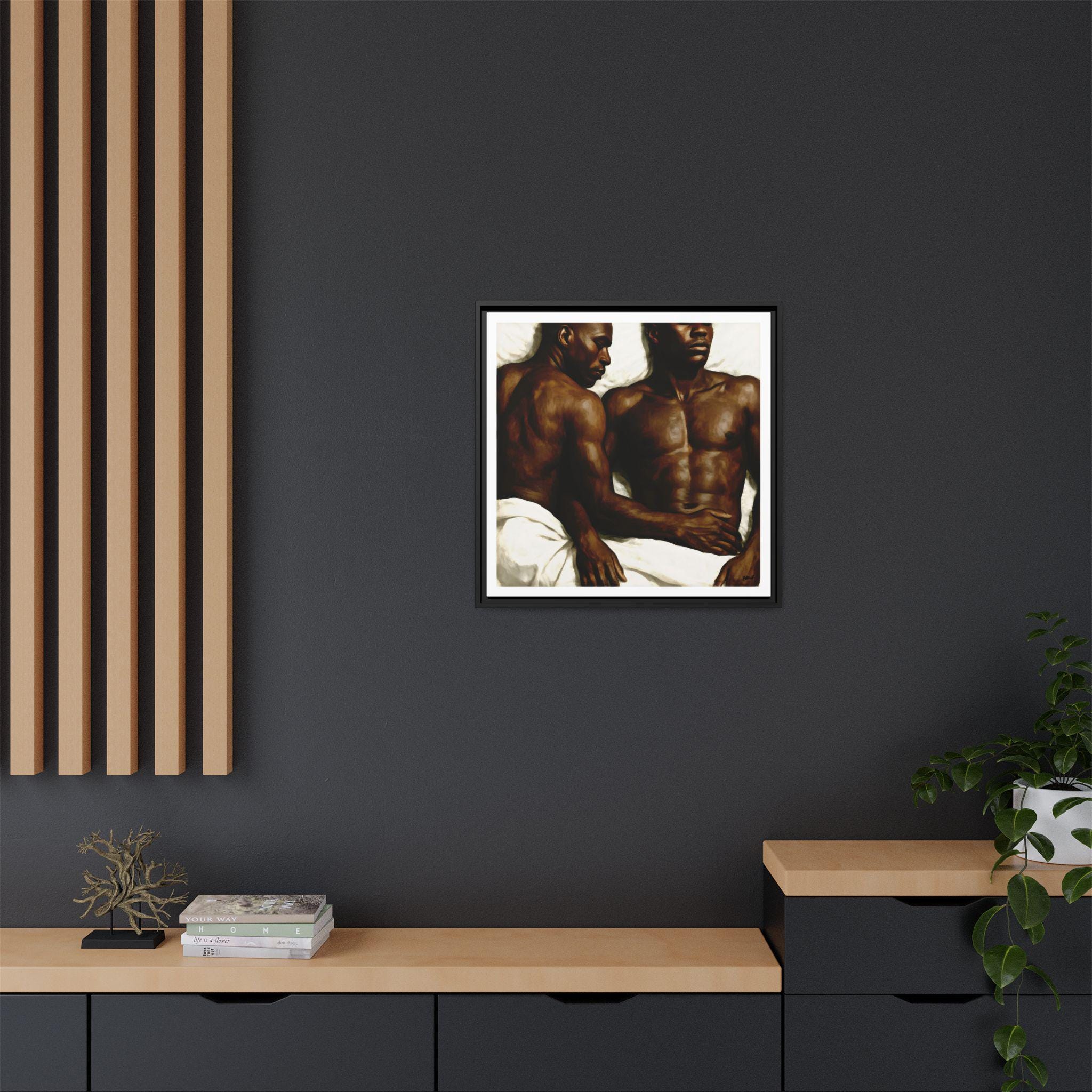 Created to honor Black queer love and the sacredness of rest, this artwork brings warmth, emotional depth, and modern elegance to any space. Perfect for bedrooms, studios, creative spaces, or gallery-style home walls.