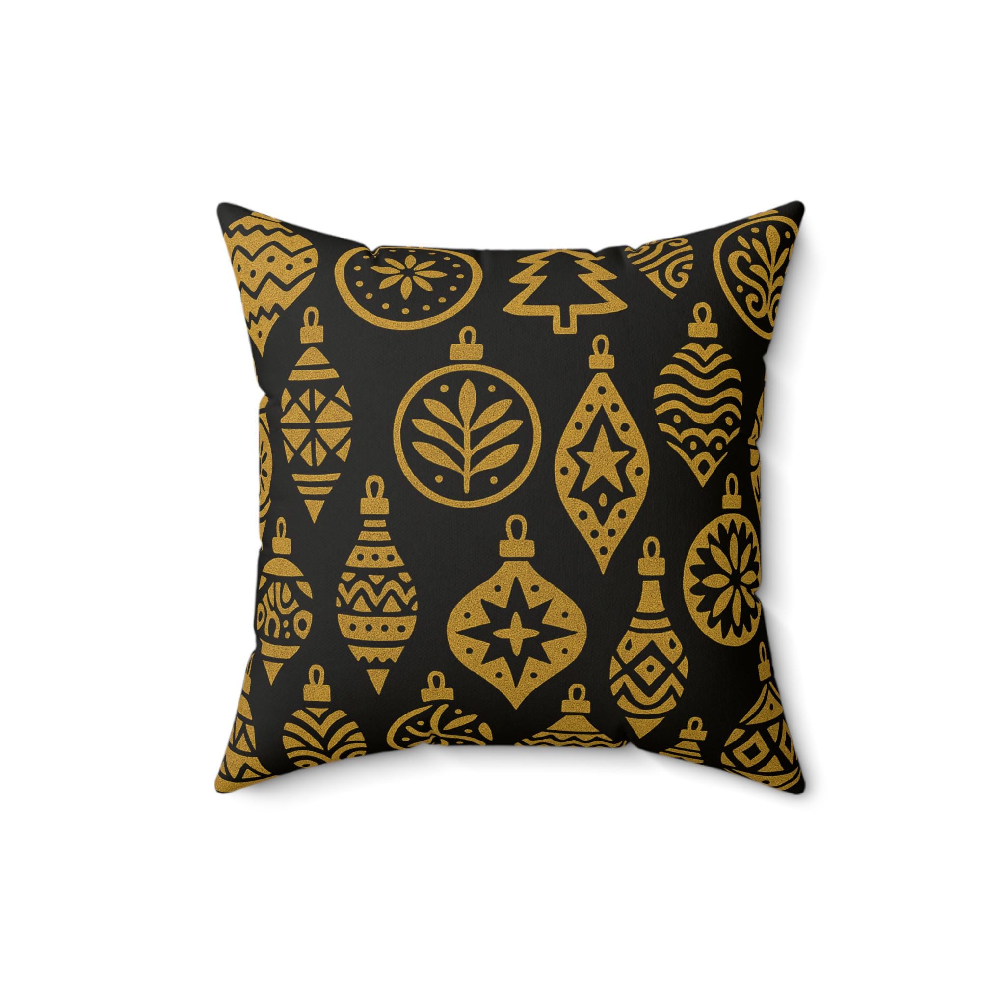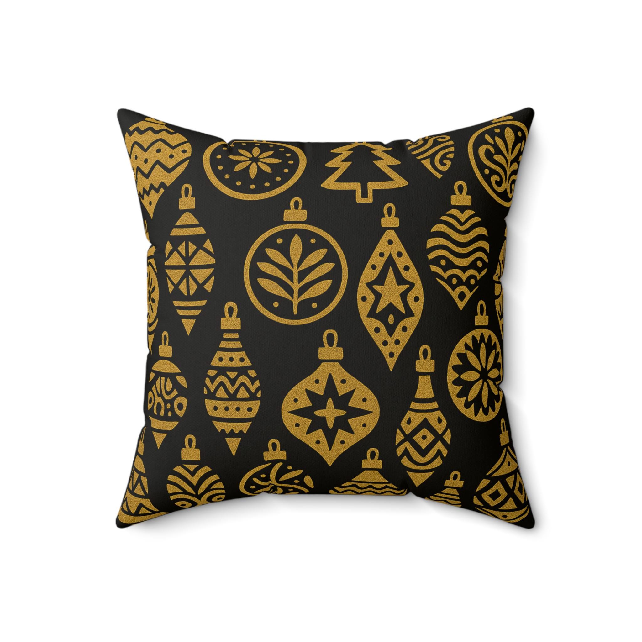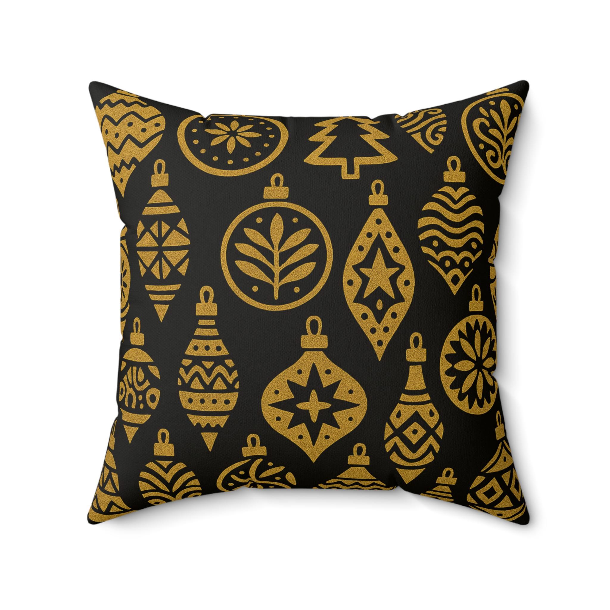 This luxurious pillow featuring a gold luxe ornaments pattern will add an elegant touch to your home decor. Perfect for those who love a touch of luxury in their everyday life, this pillow is ideal for decorating during the holiday season or special occasions.