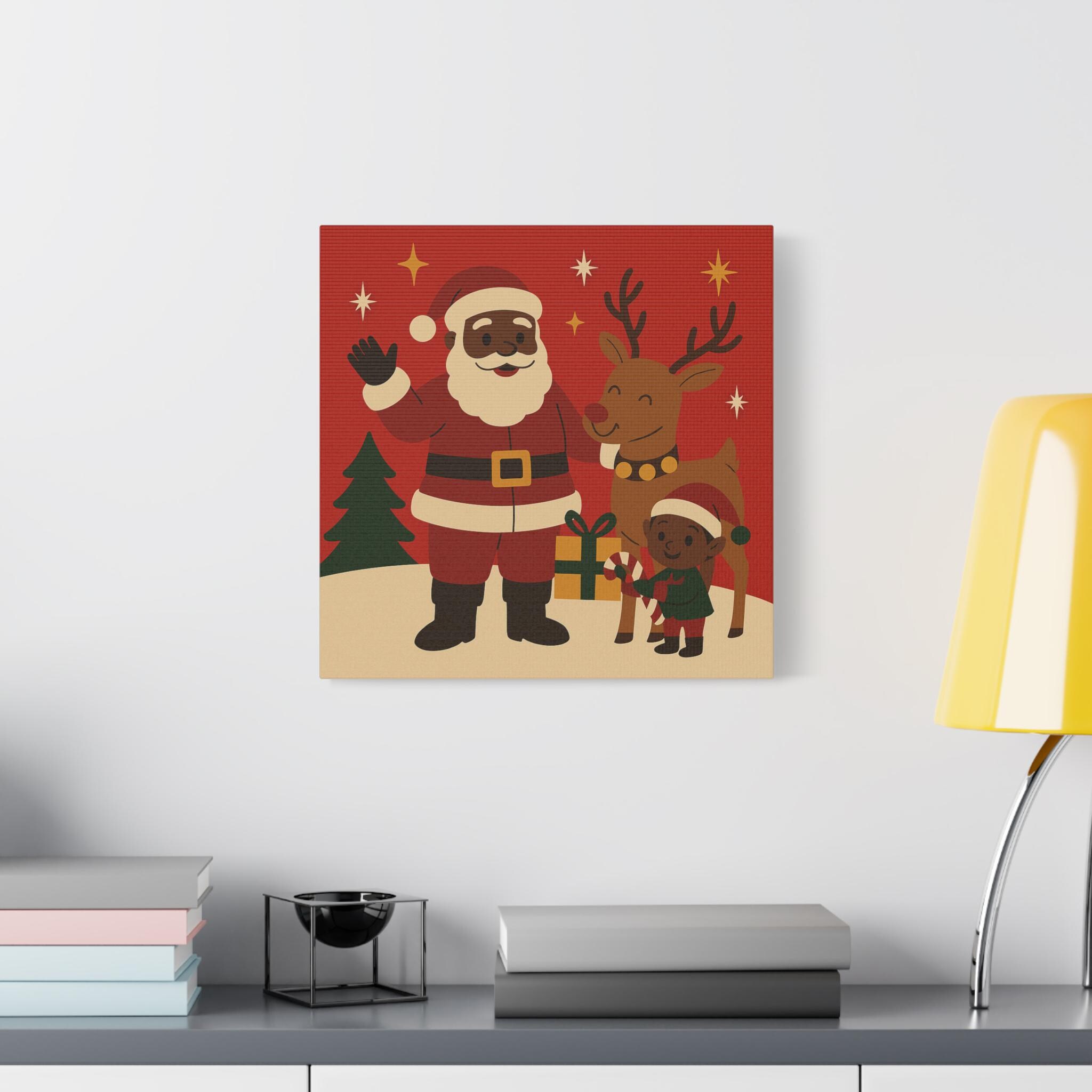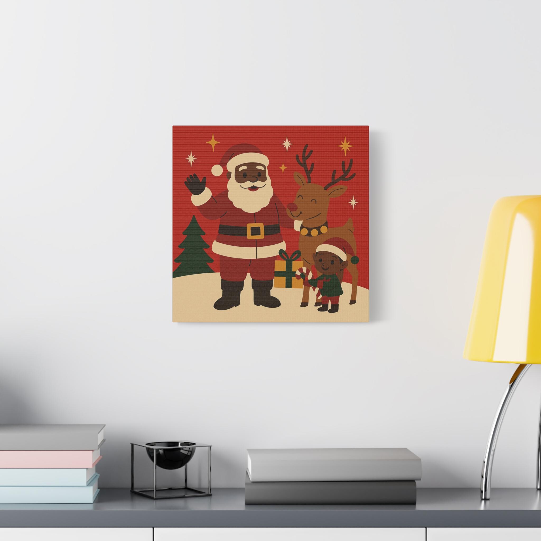 This Santa and elf canvas print exudes a festive and cheerful vibe, perfect for the holiday season. It will bring a touch of Christmas spirit to any room and is ideal for anyone looking to add some seasonal decor to their home. This canvas print is relevant for Christmas and winter holiday celebrations.