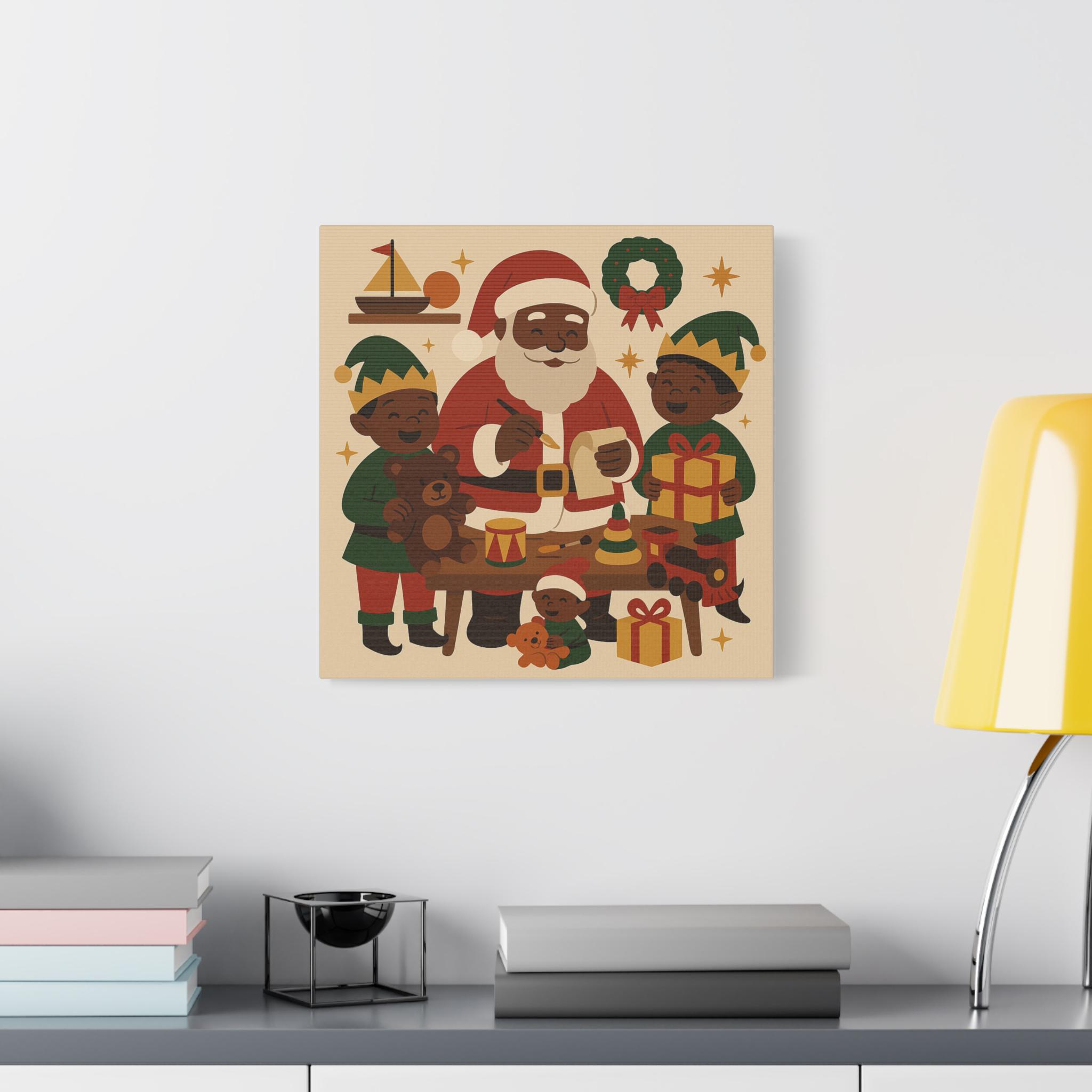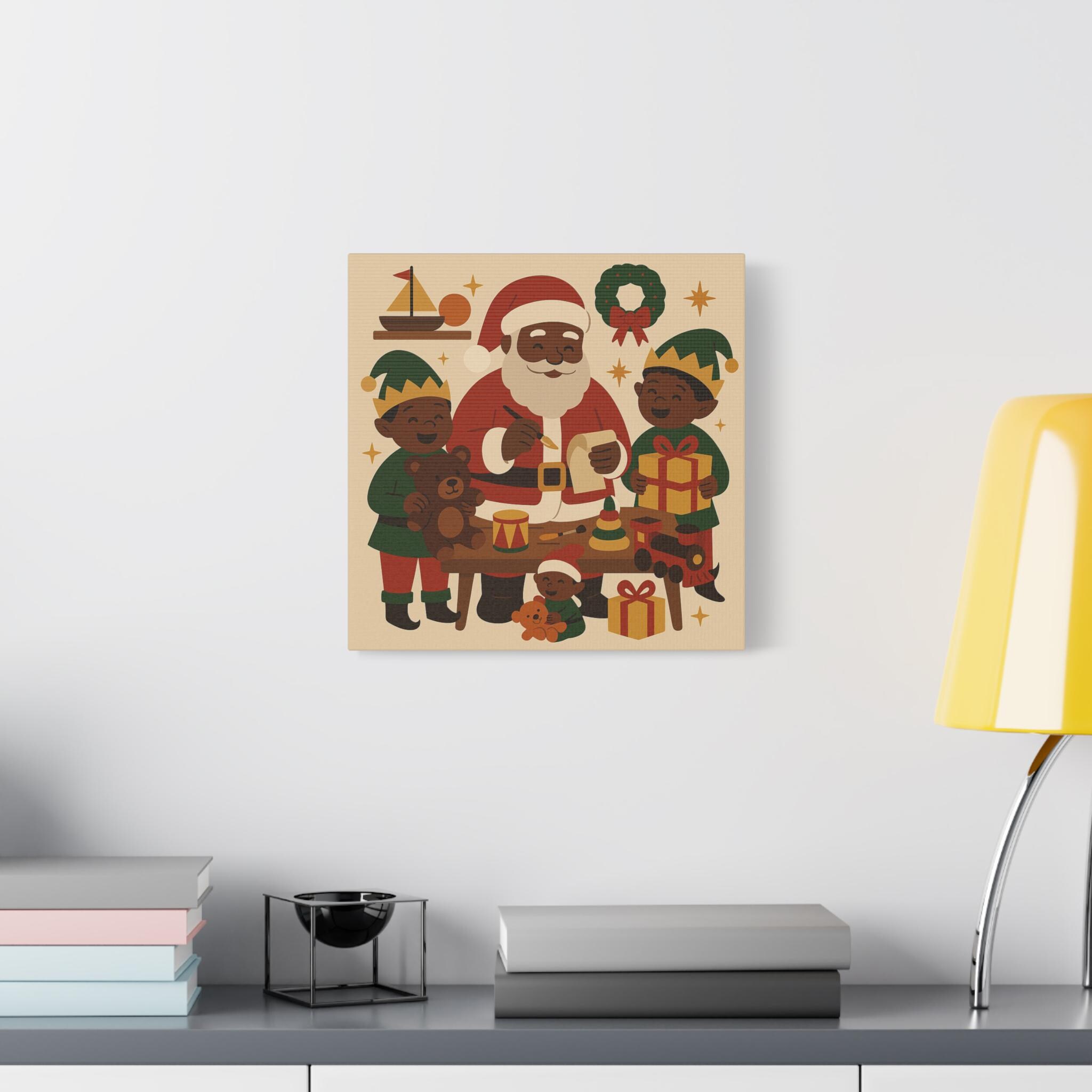 Capture the whimsical charm of Santa's toy shop with this matte canvas print. Perfect for adding a festive touch to your holiday decor or gifting to someone who loves Christmas. Ideal for those who appreciate sustainable and high-quality art.
