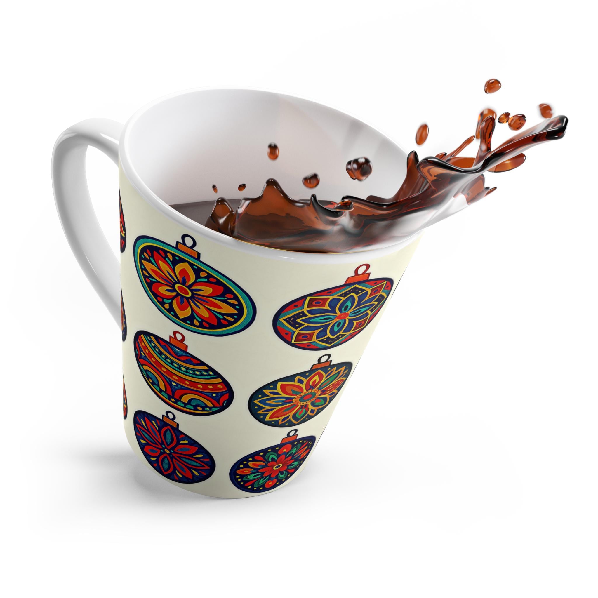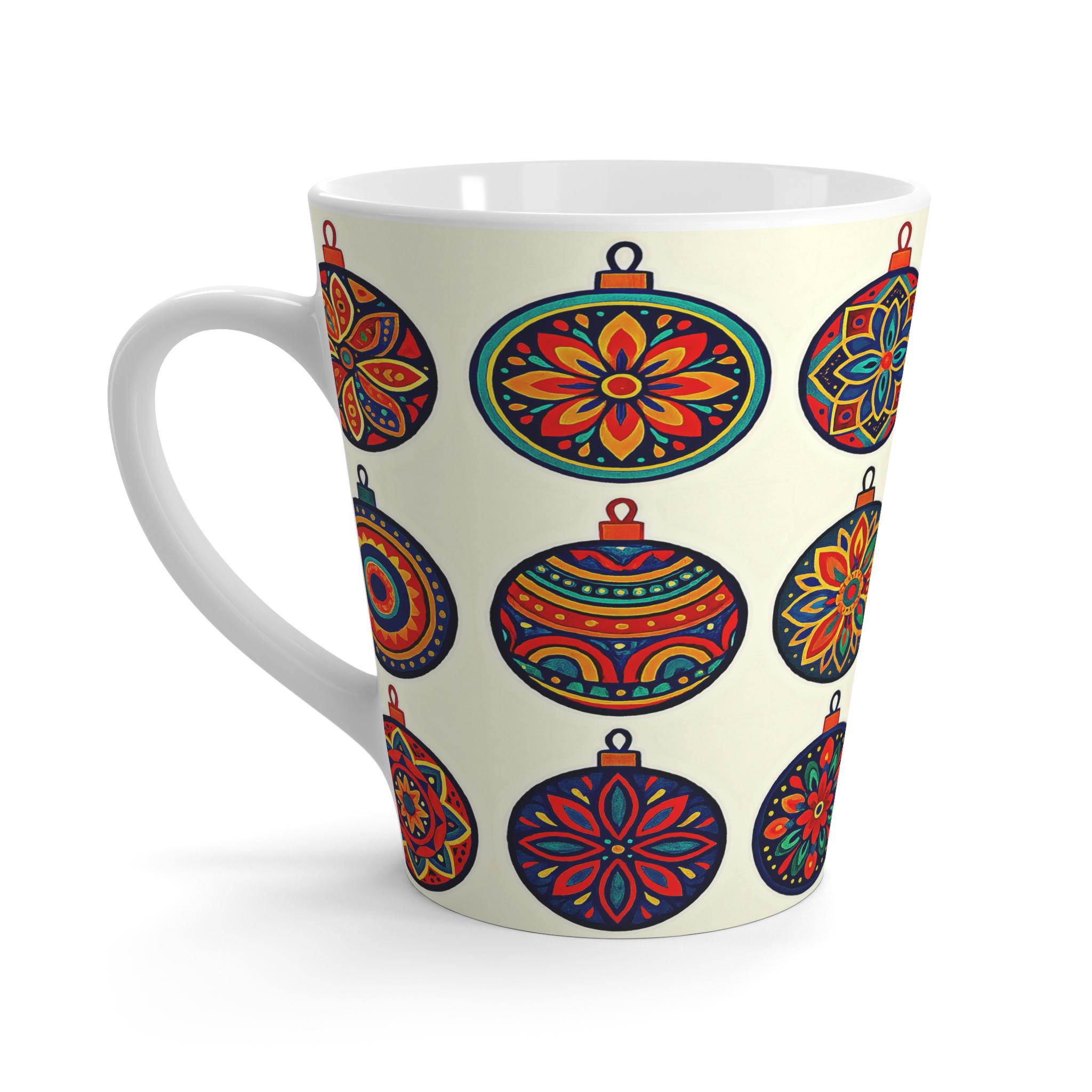 Warm, whimsical, and just a little nostalgic. The tall, tapered shape gives each cup an elegant silhouette while the vibrant, vintage-style mandala illustrations wrap around the exterior, inviting a quiet smile with every sip. It feels at home during cozy mornings by the tree, slow weekend breakfasts, or when you want a touch of festive cheer at your desk. Sturdy white ceramic keeps colors bright and the C-handle sits comfortably in hand, so reaching for a refill never interrupts the moment.
