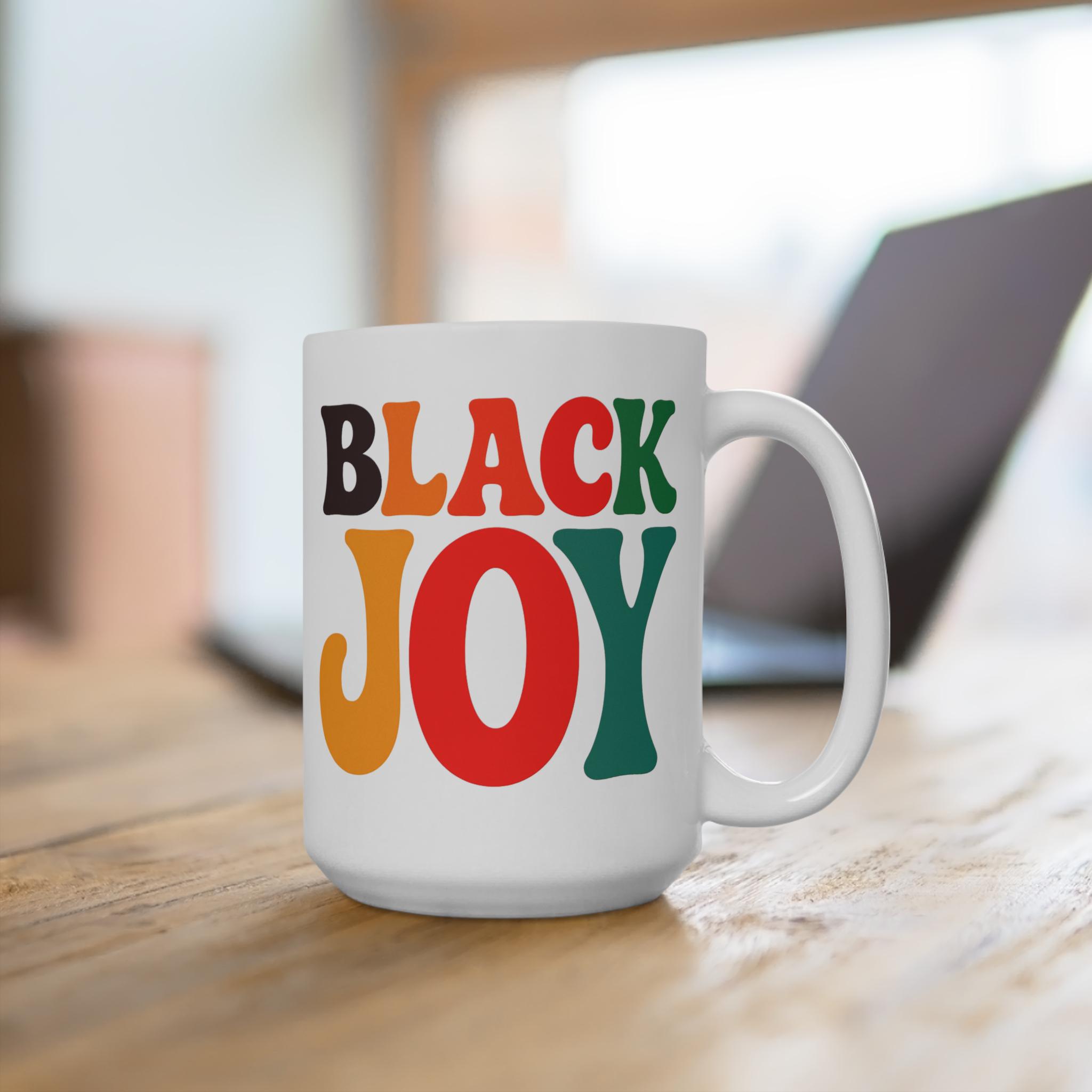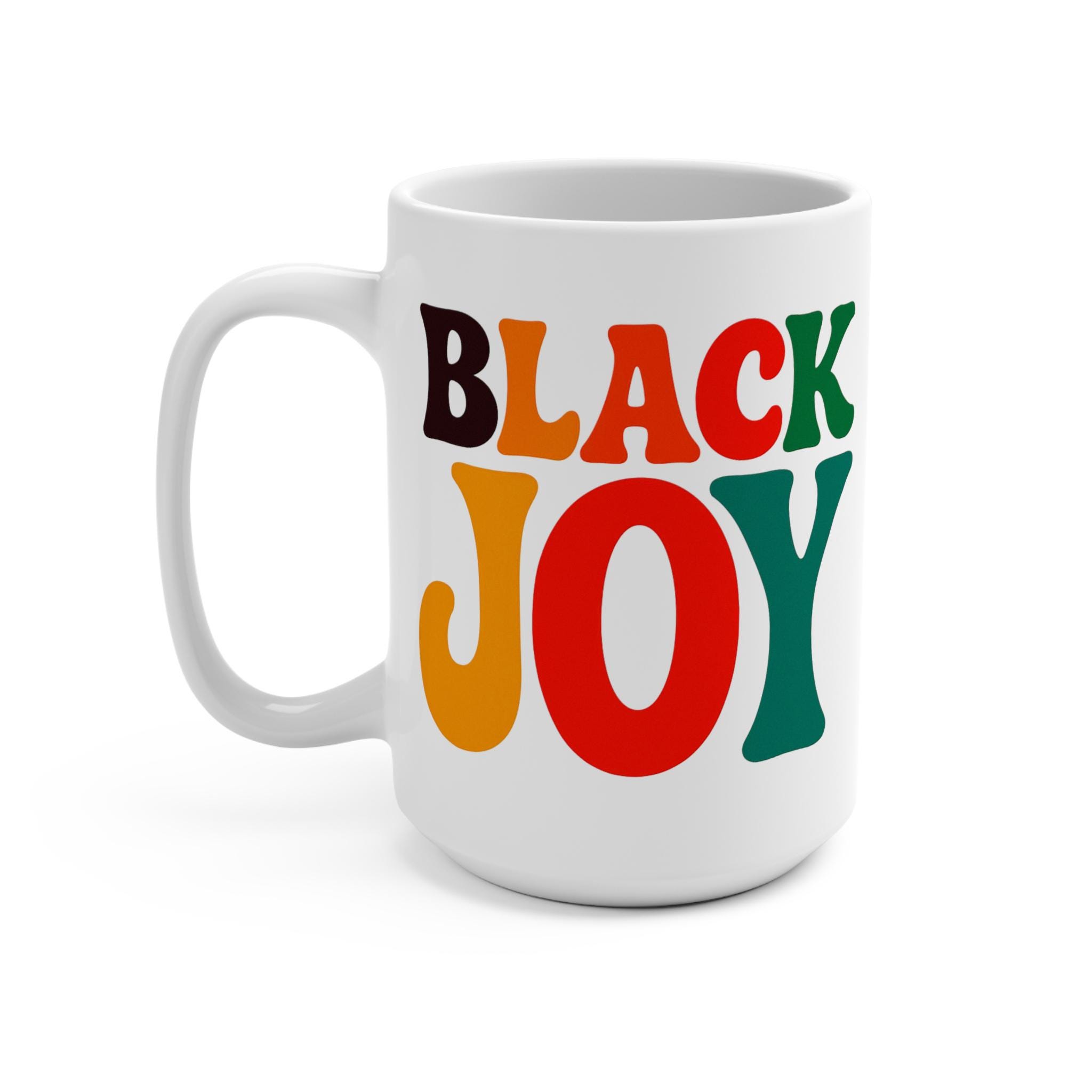 This Black Joy mug brings a beautiful holiday retro vibe to your daily coffee or tea routine. Perfect for those who love festive decor and add a touch of holiday cheer to their morning beverages. Great for Christmas and winter celebrations.
