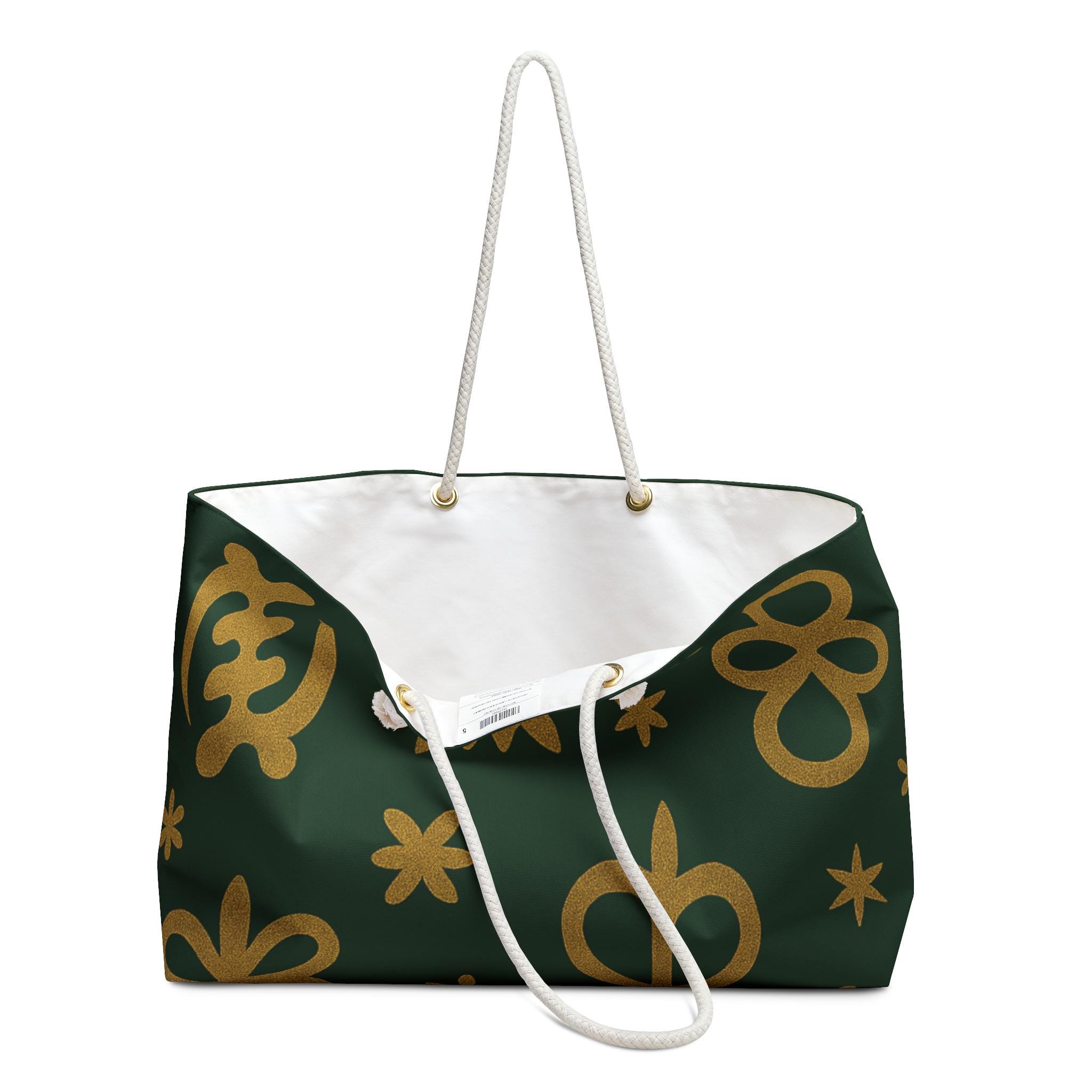 Our oversized Weekender Tote is perfect for your weekend at the beach or in town. The wide-mouthed, durable bag holds a generous amount of personal items and is easily held by its thick rope handles.