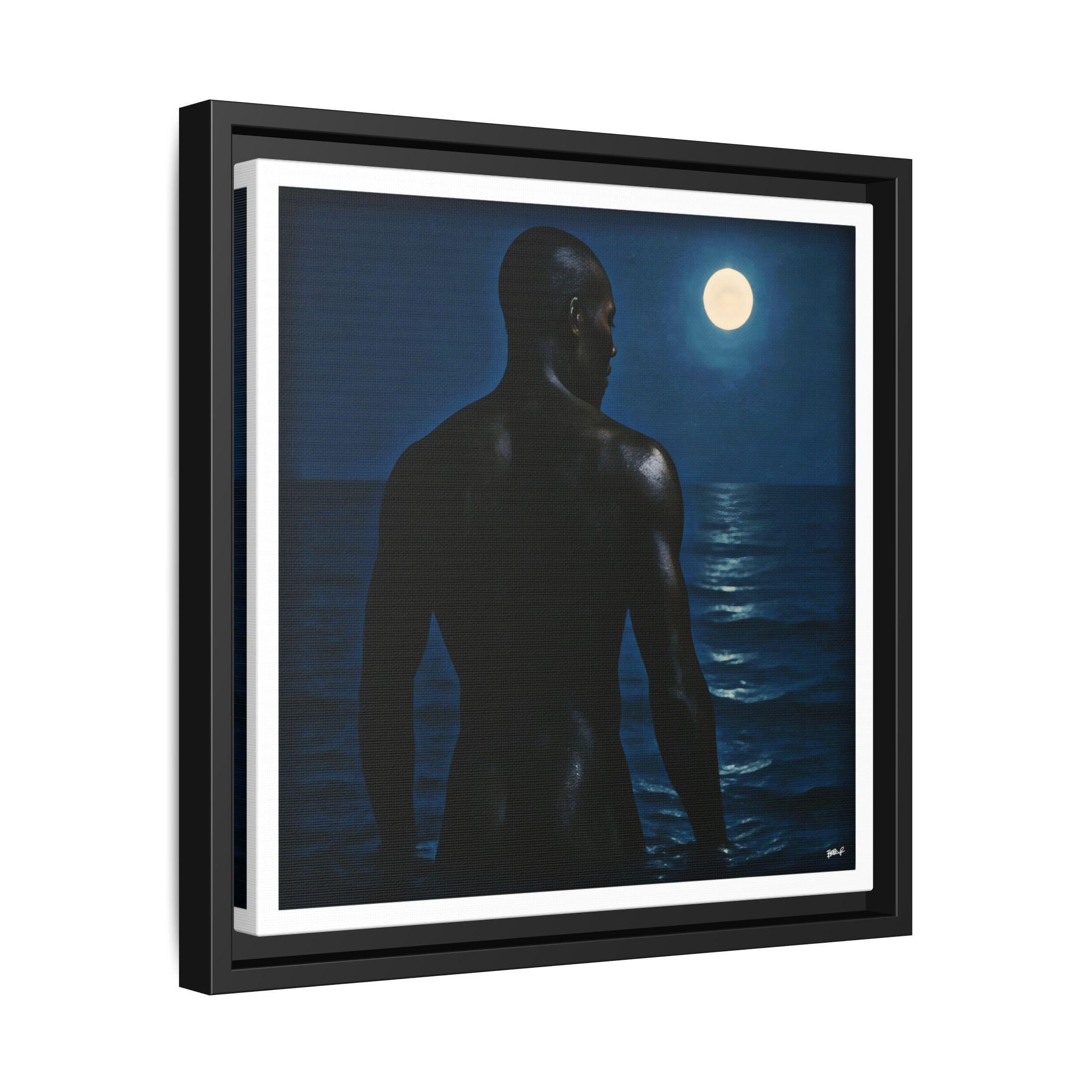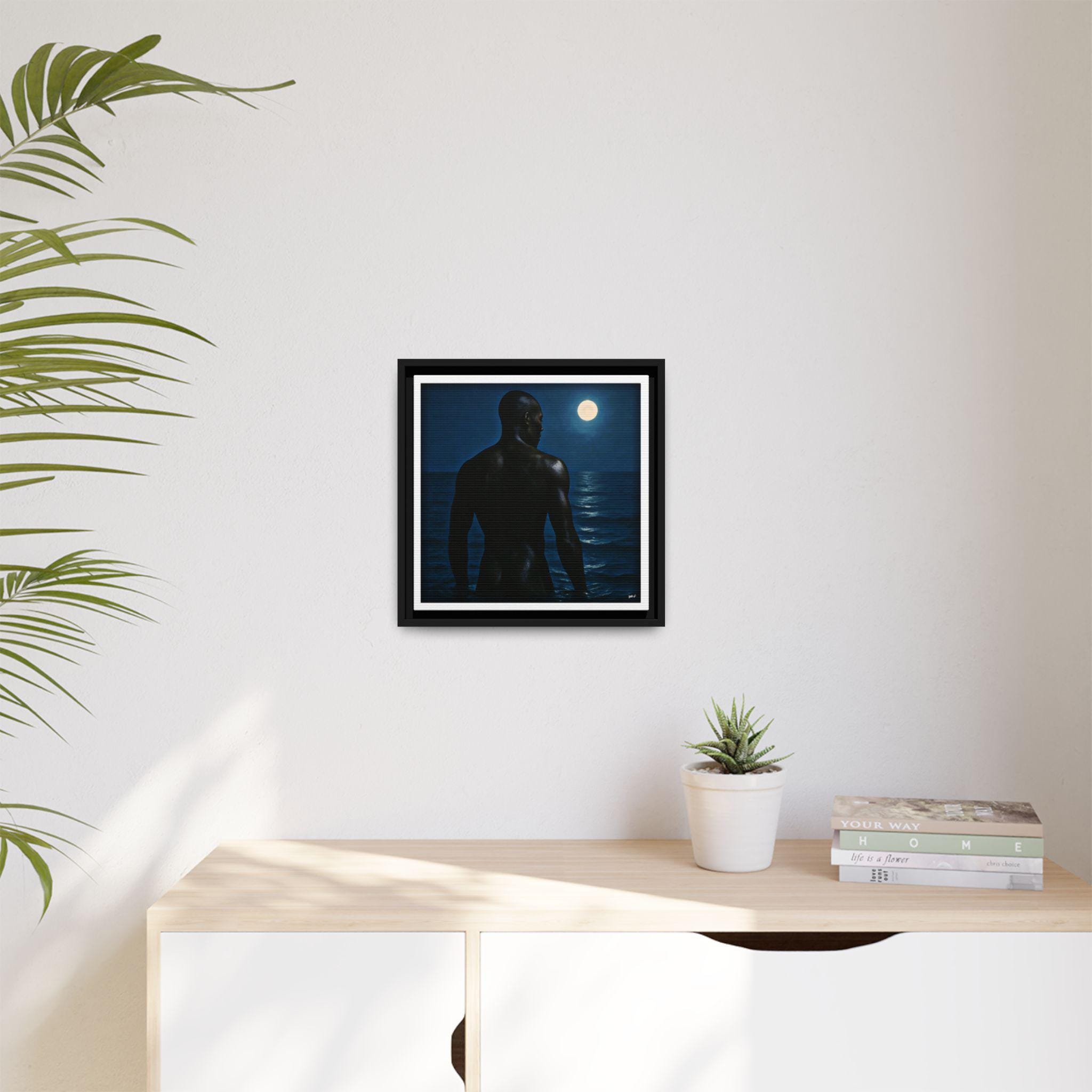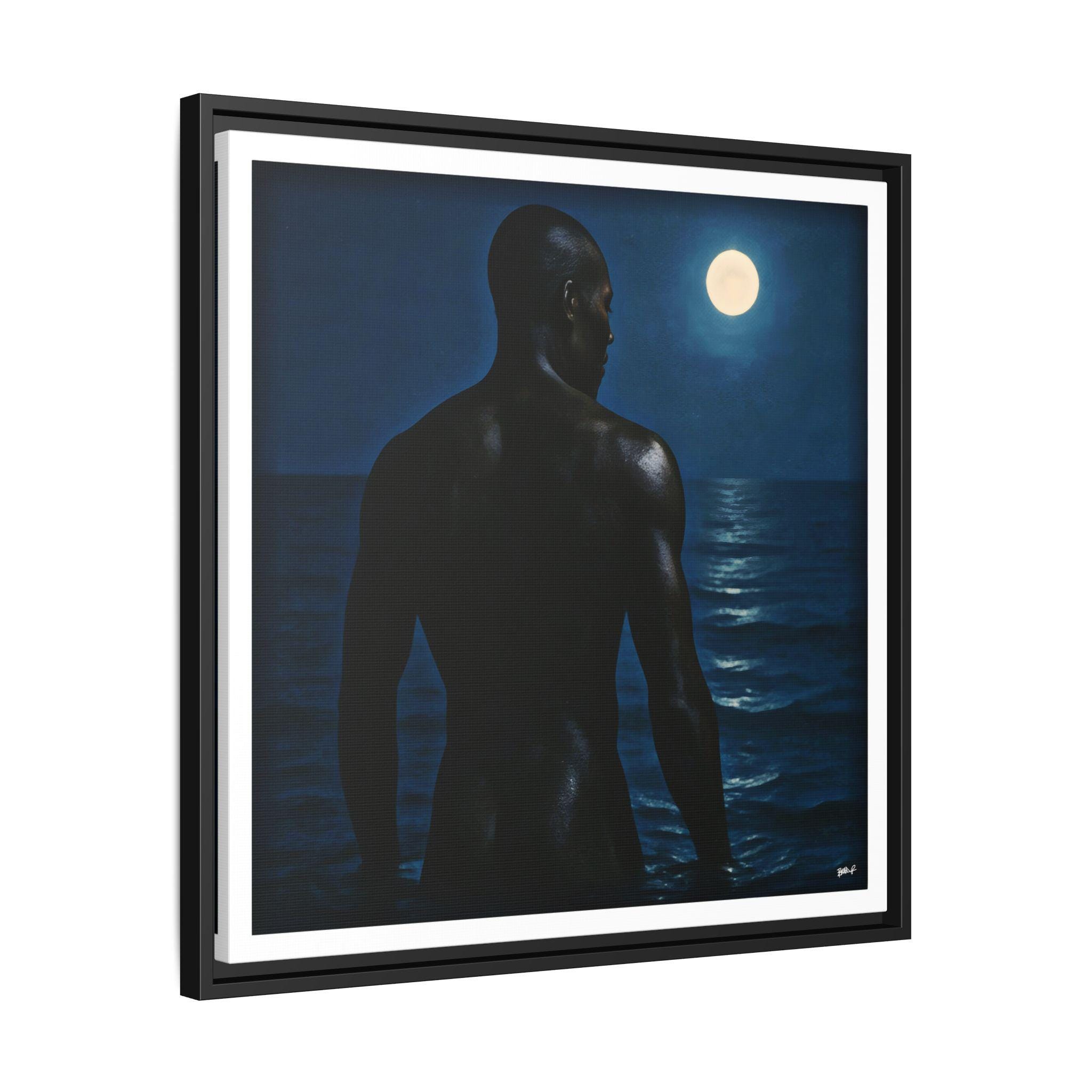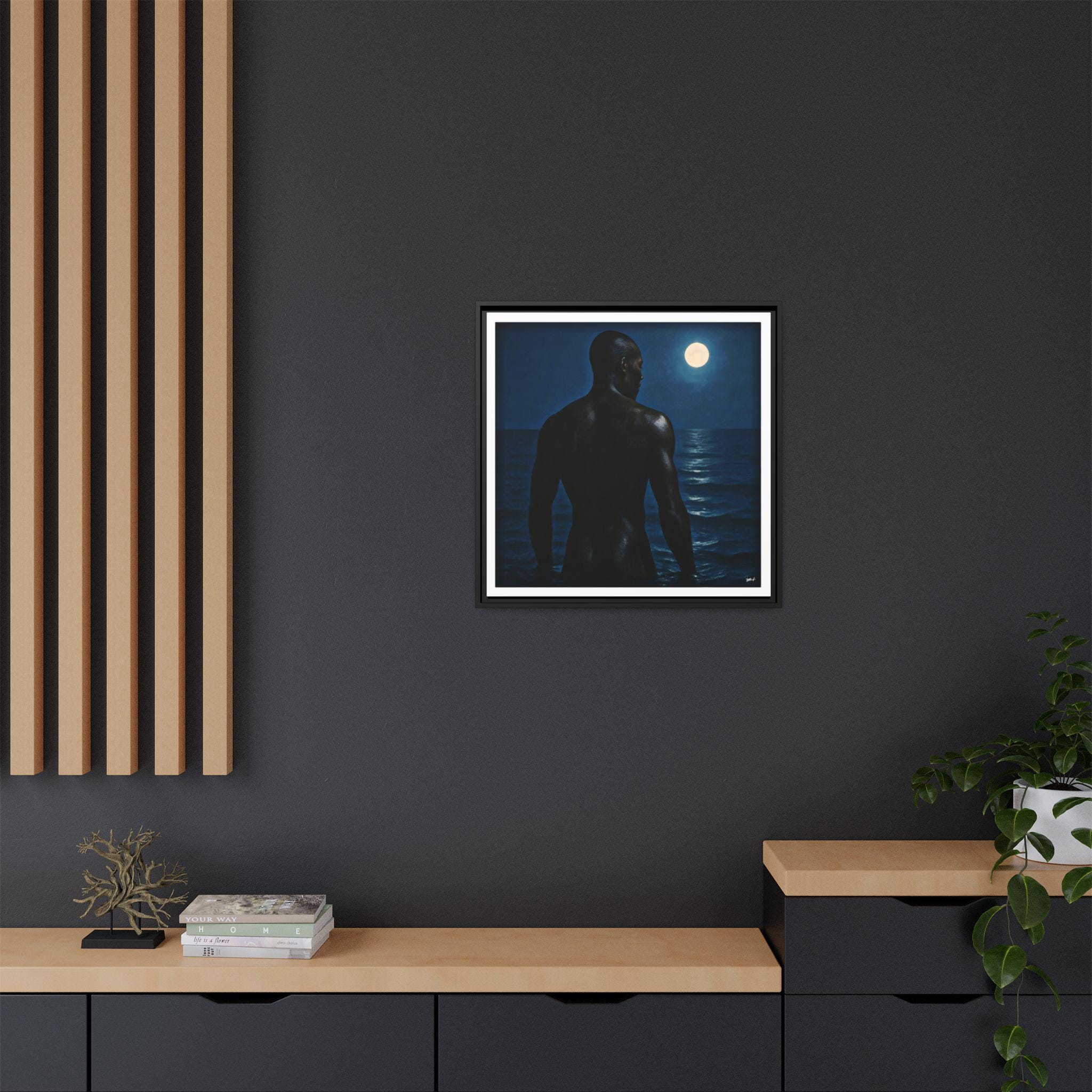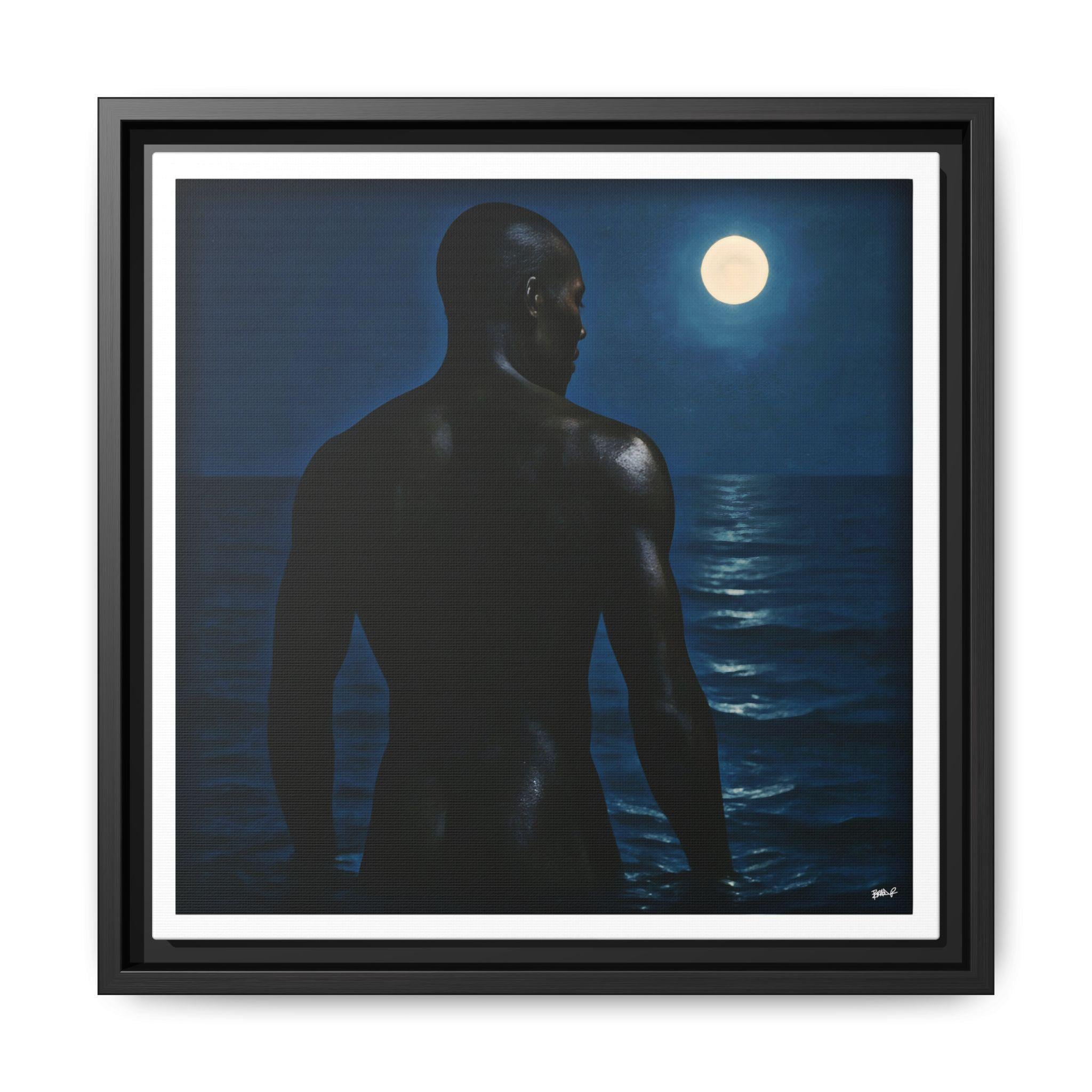 The piece draws from the lineage of Black homoerotic art while resisting spectacle. Instead, the gaze becomes intimate: quiet, lingering, reverent. Every highlight on his skin echoes the moon’s reflection on the waves, blurring the line between flesh and water. In this convergence, the work suggests cleansing, rebirth, longing, and the magnetic pull of queer solitude.