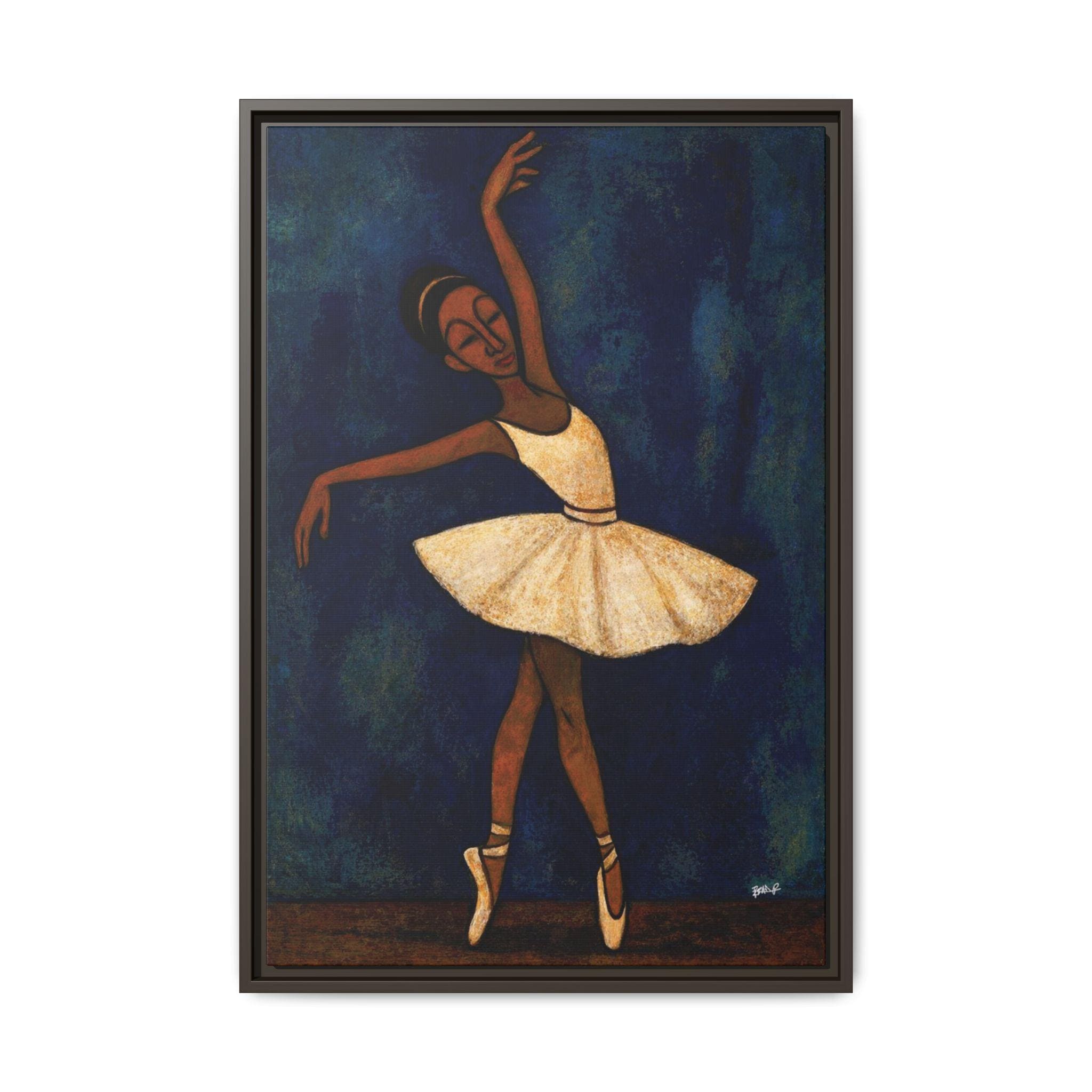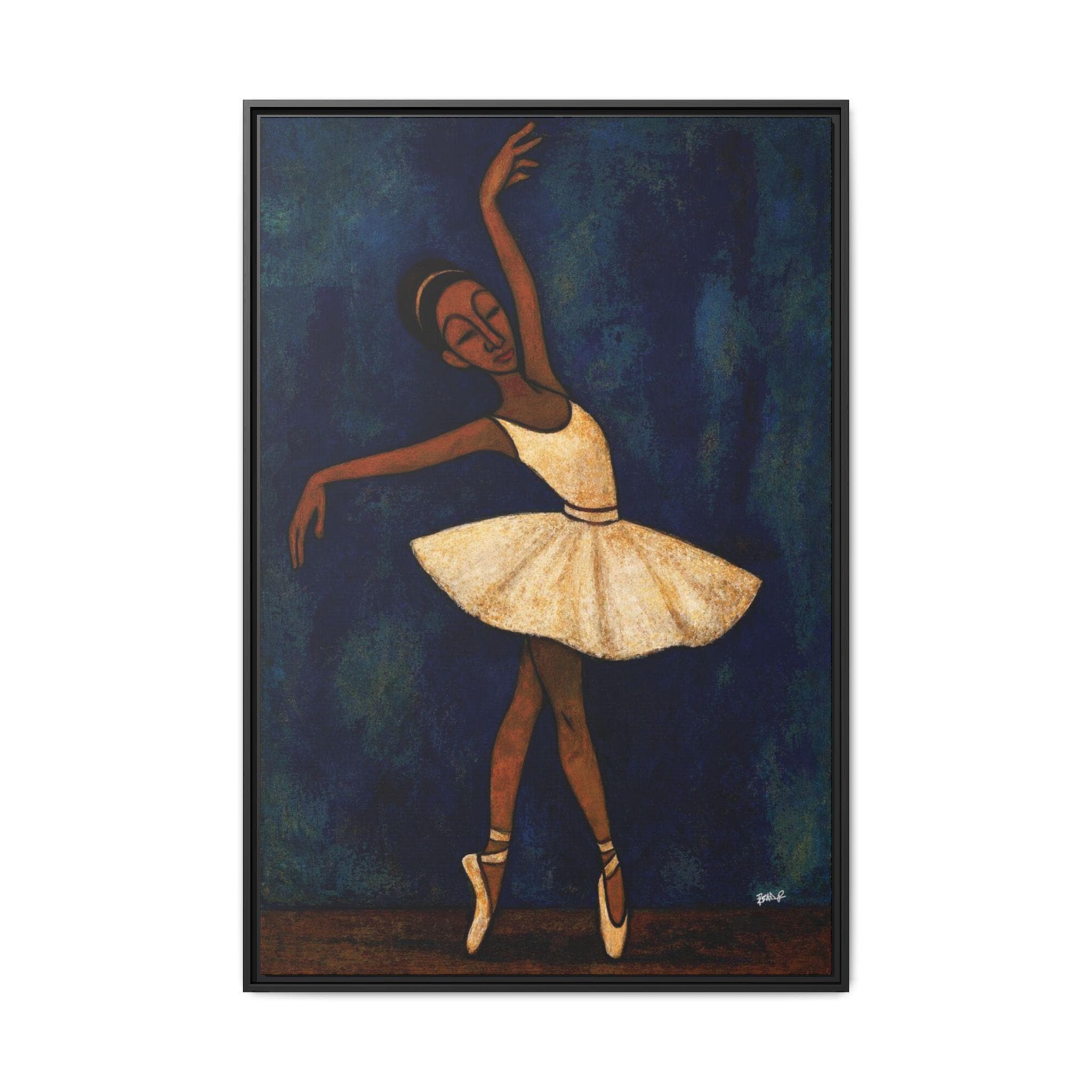 Between Counts captures a solitary moment of discipline and devotion—when the body moves not for applause, but for memory, breath, and balance. Rendered in layered blues and warm earth tones, the dancer stands en pointe in quiet suspension, her eyes closed, her form elongated beyond strict realism into gesture and feeling.