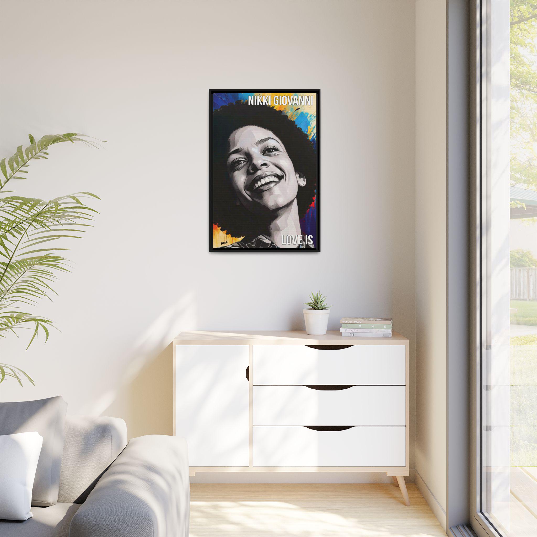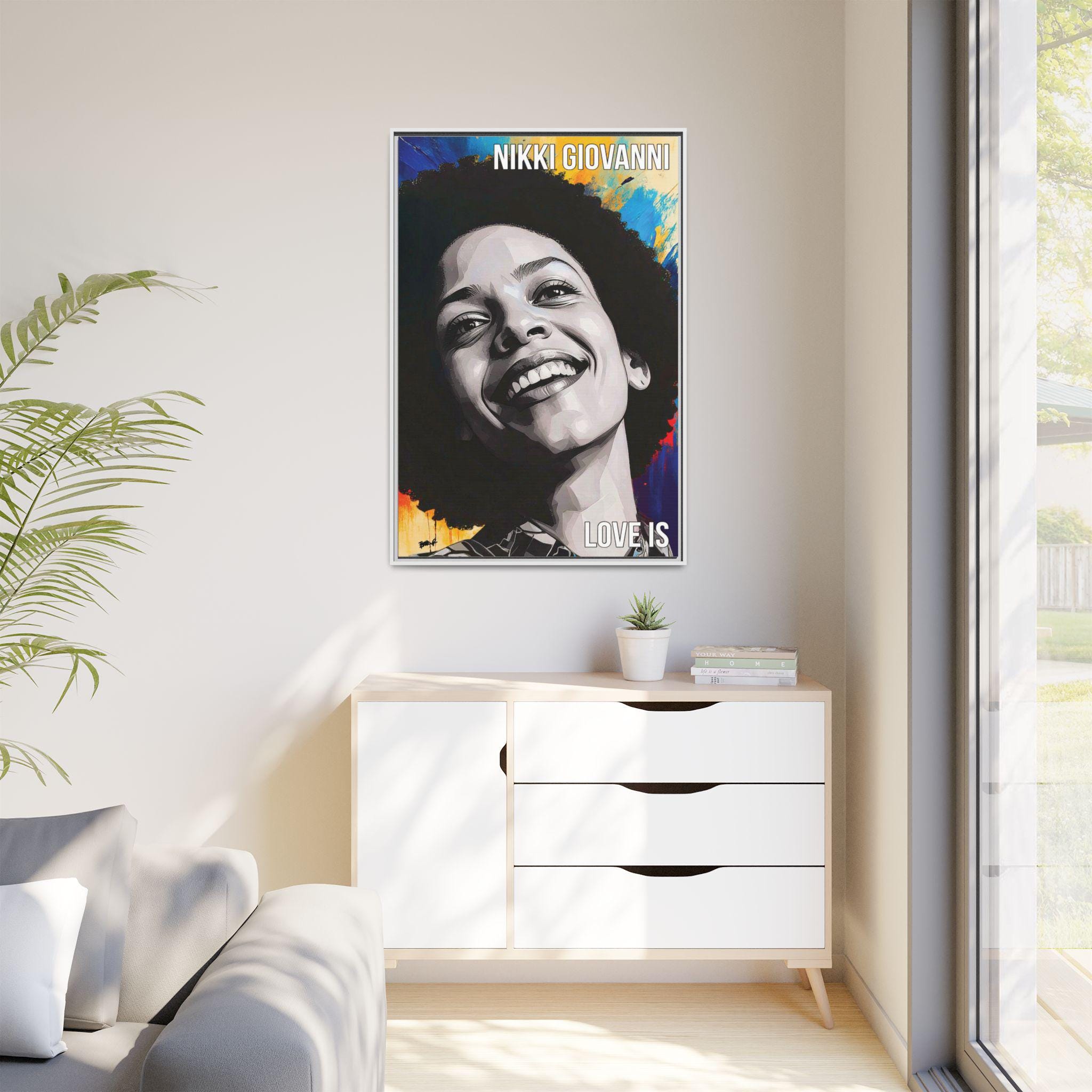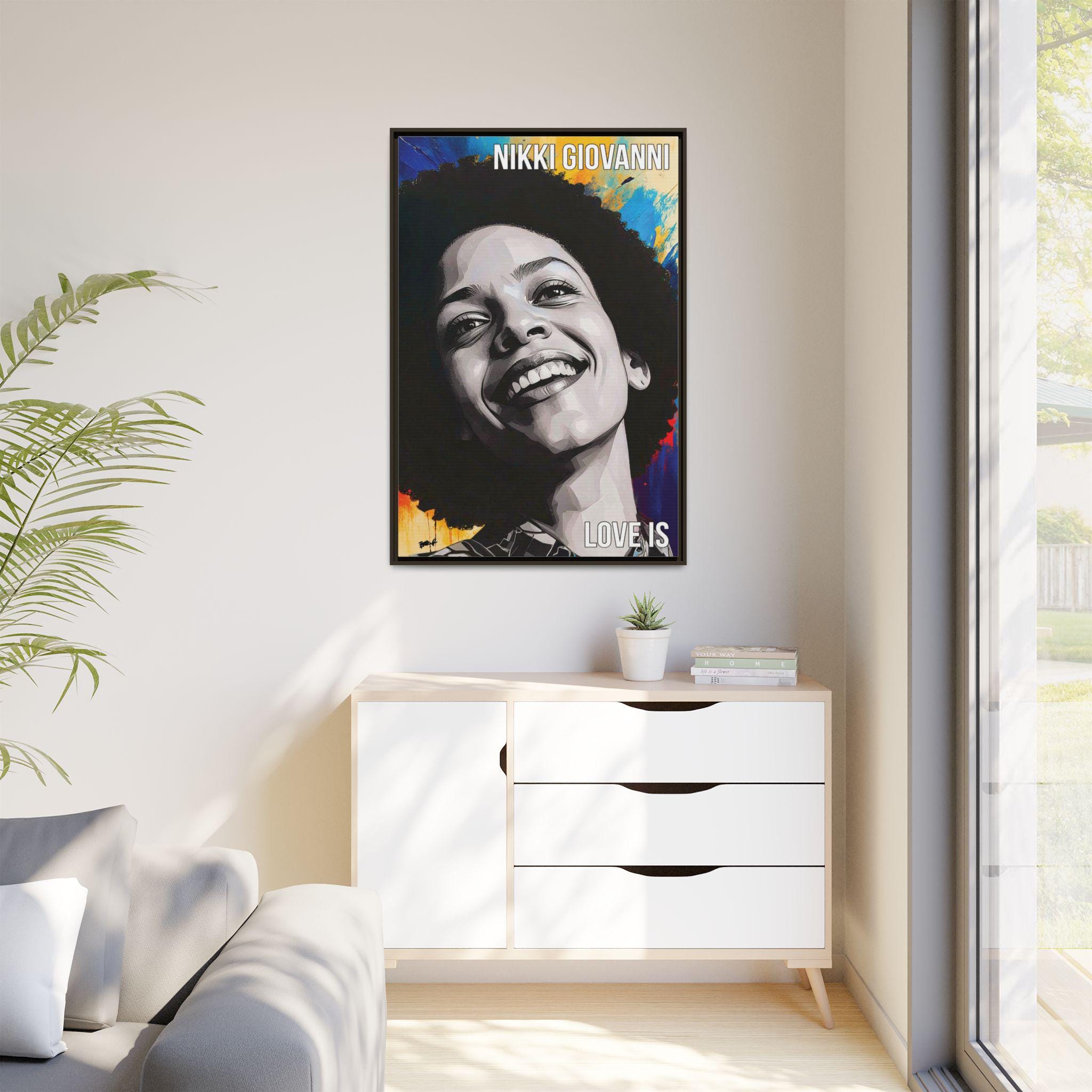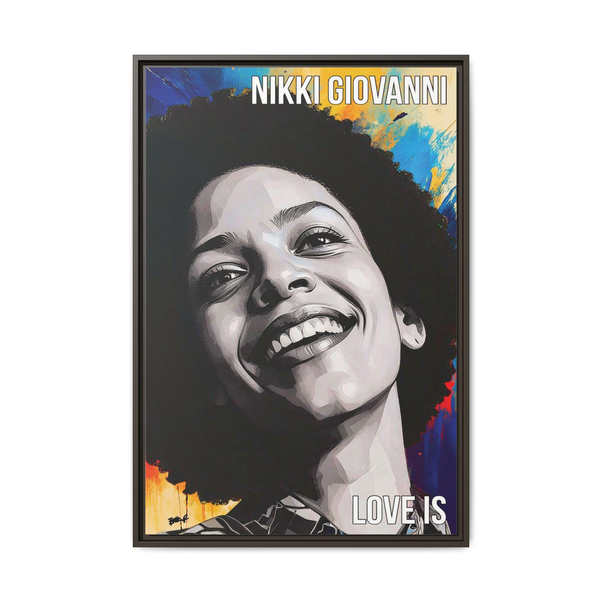 "Nikki’s Sunburst Smile" captures poet Nikki Giovanni as both presence and force, joy rendered with gravity. Her face, sculpted in bold grayscale planes, emerges against a radiant field of color, as if light itself is responding to her expression. The contrast between the restrained portrait and the energetic background mirrors Giovanni’s legacy: clarity of voice paired with emotional expansiveness.
