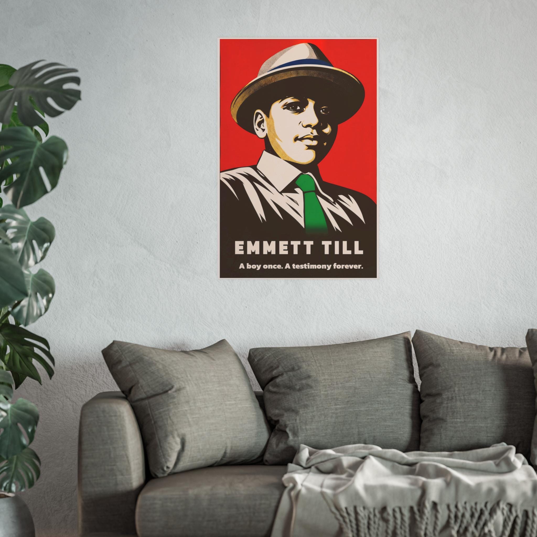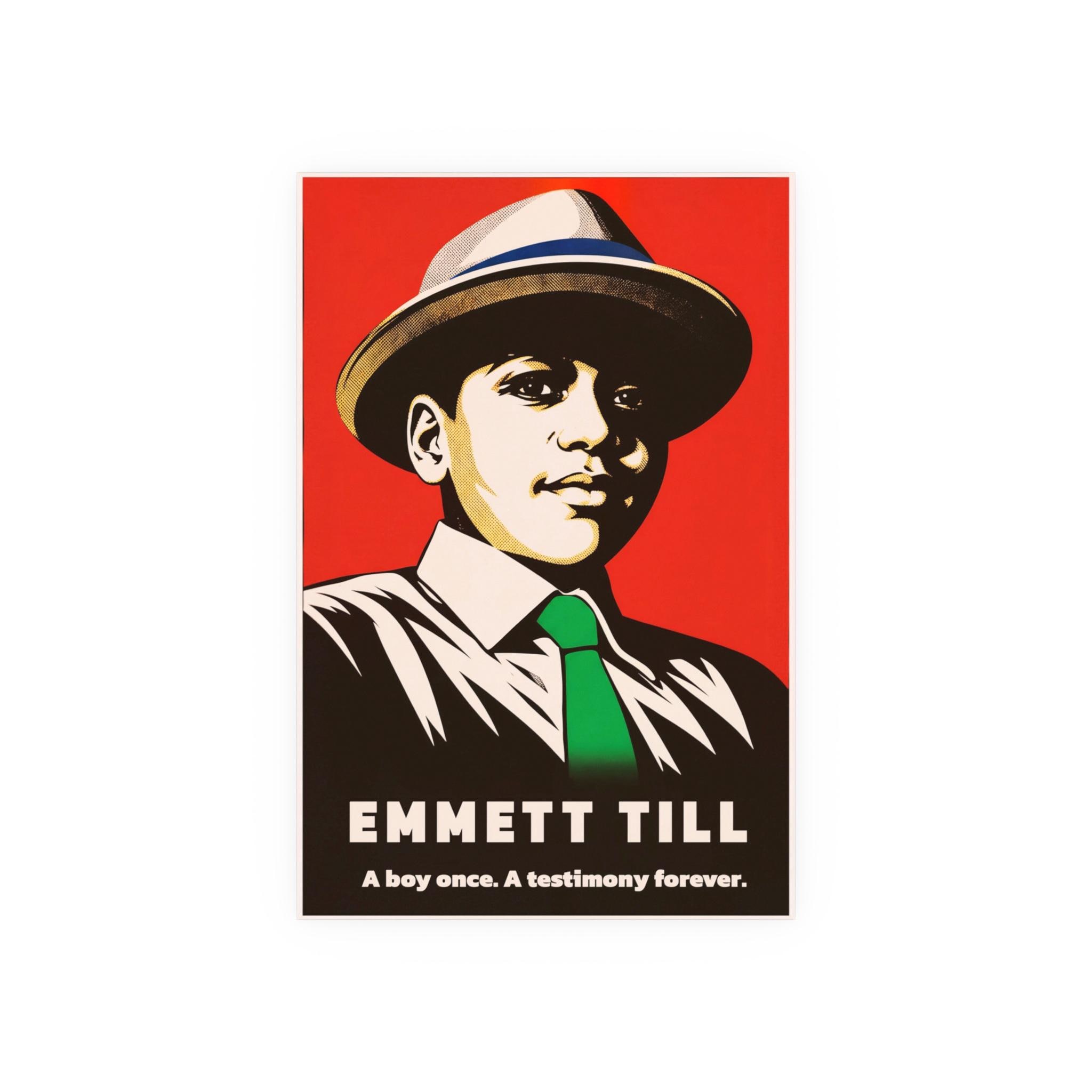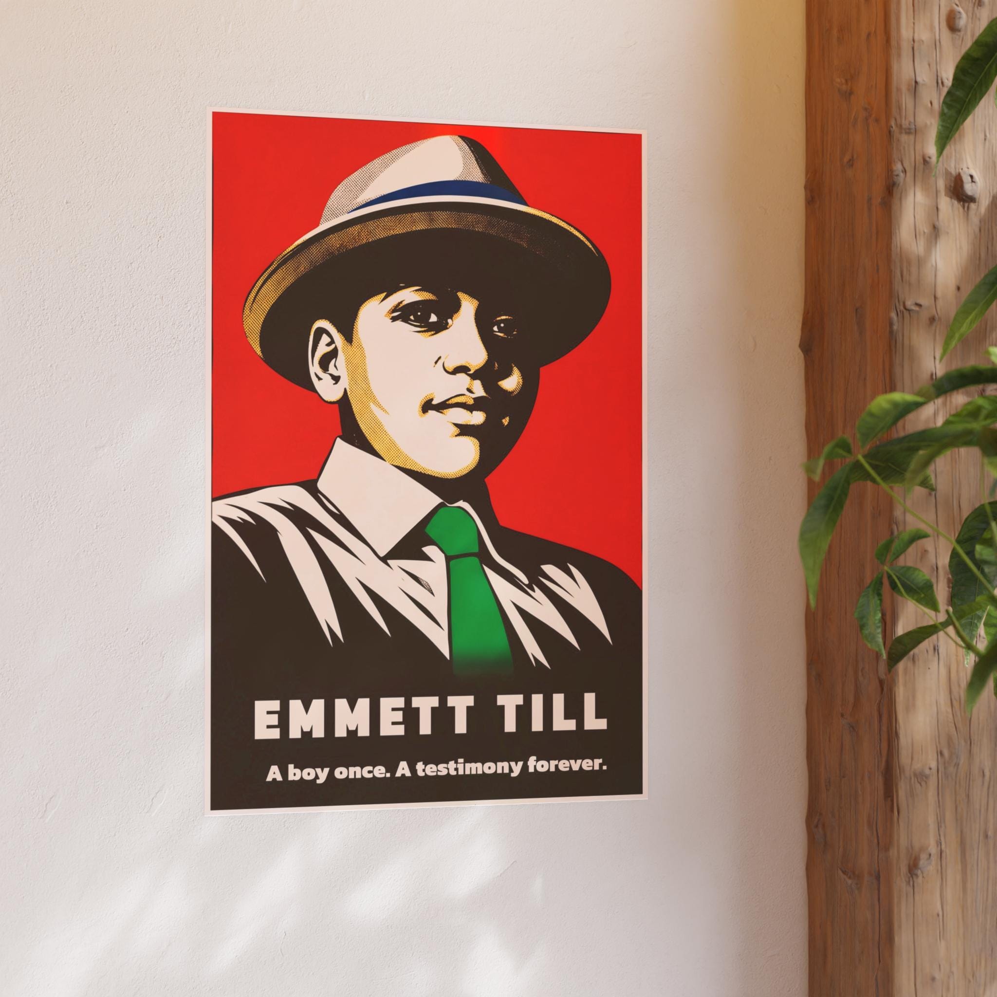 The portrait presents Emmett Till as he was before violence claimed the narrative—composed, dignified, unmistakably a child. Rendered in a restrained palette, the image resists spectacle and abstraction, insisting instead on presence. The calm gaze refuses erasure. The green tie quietly signals life, youth, and what should have been allowed to grow.