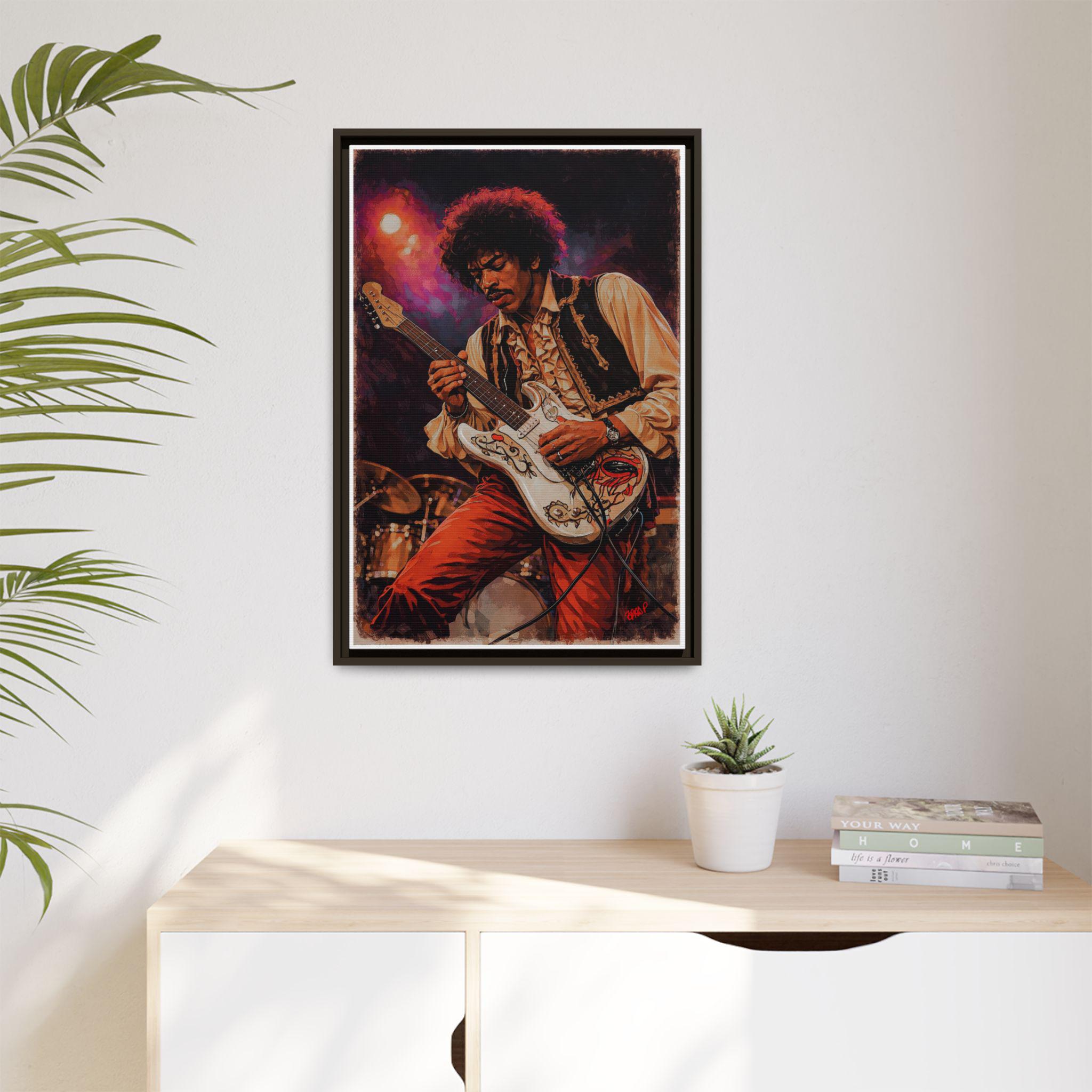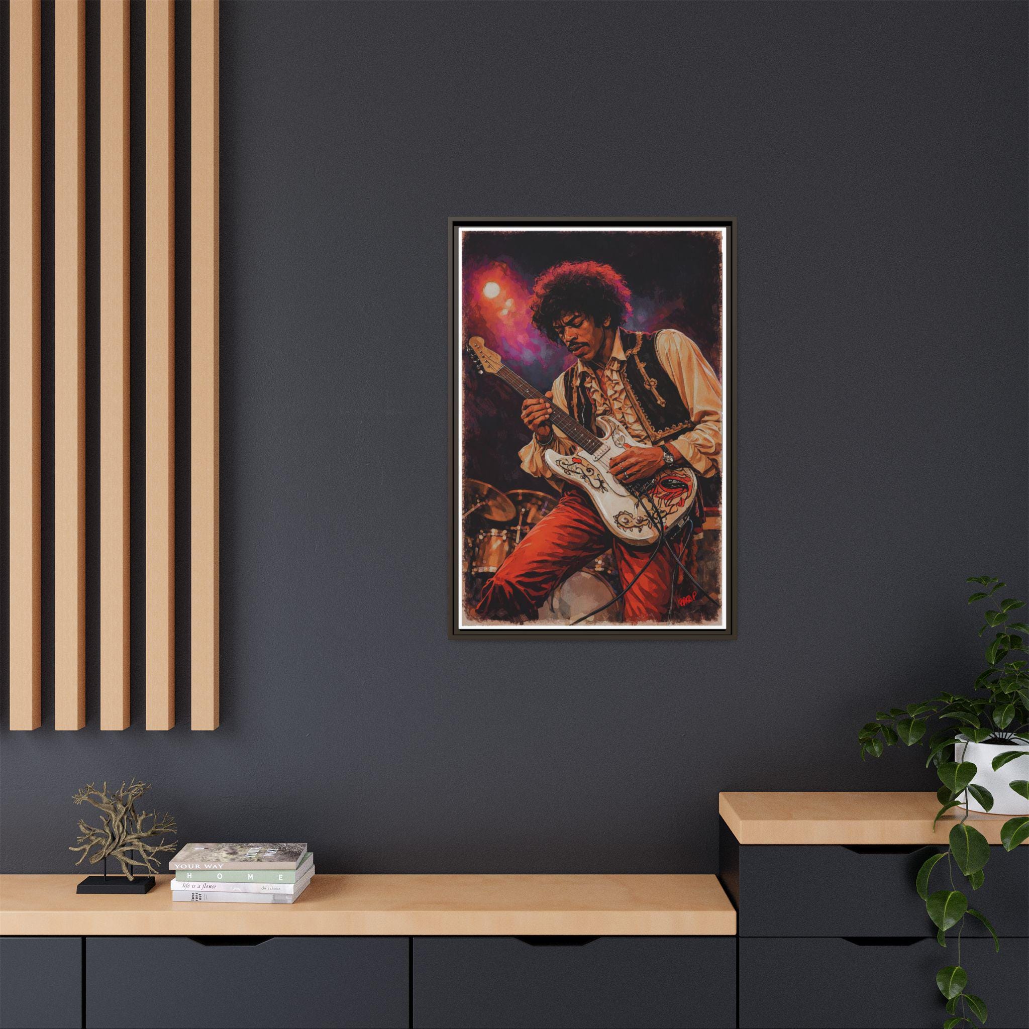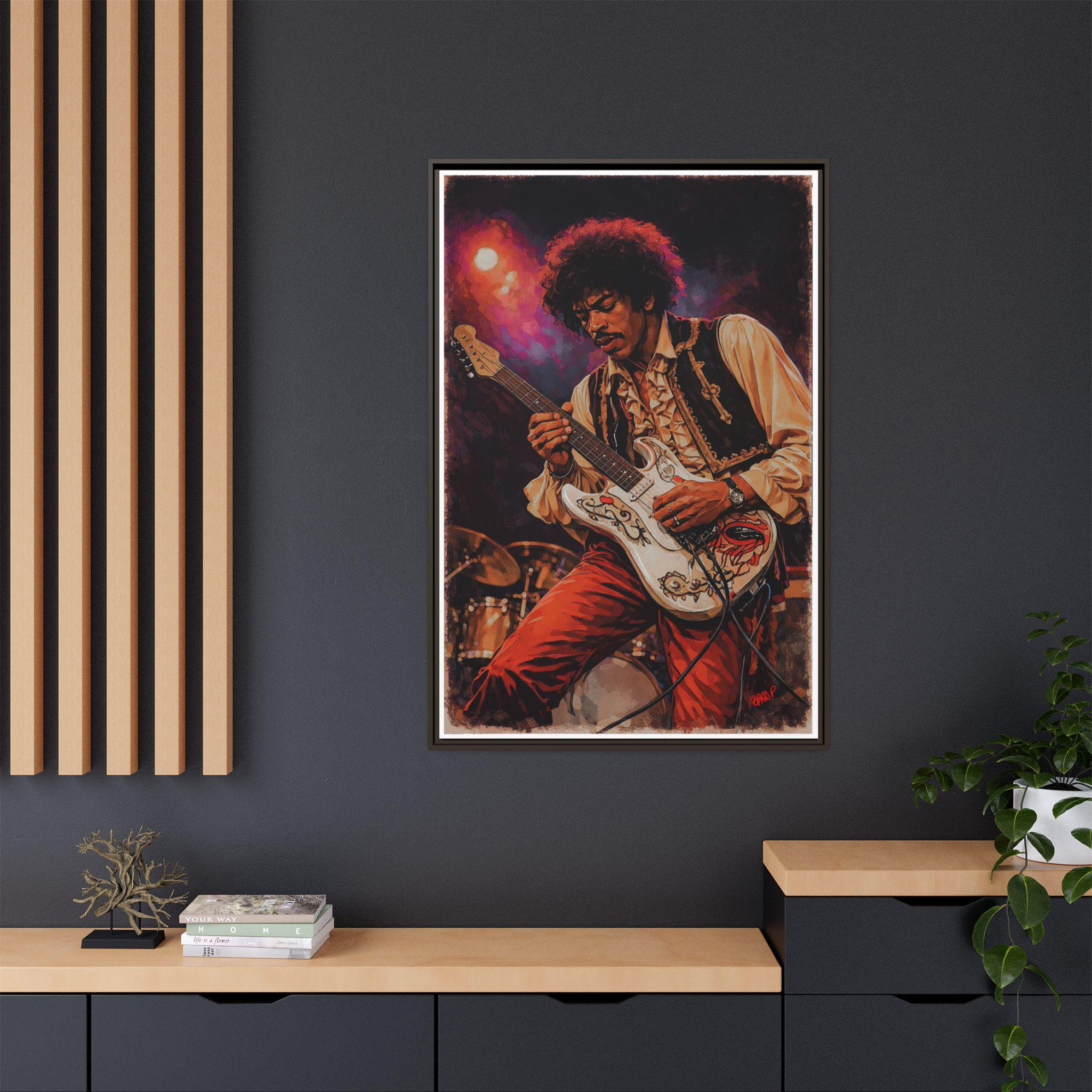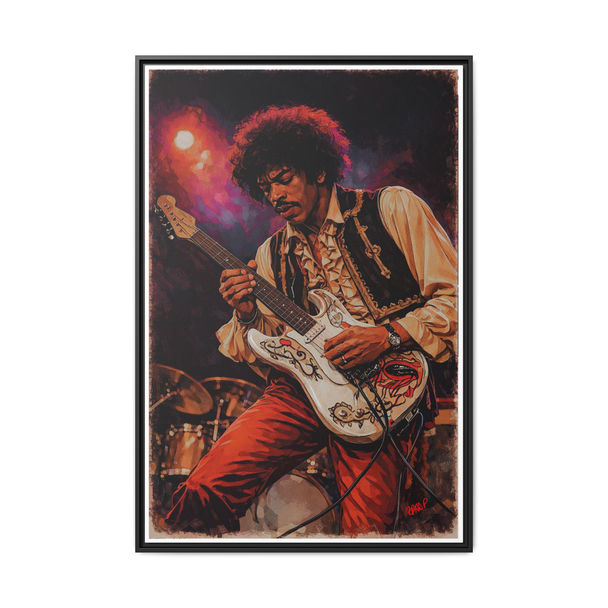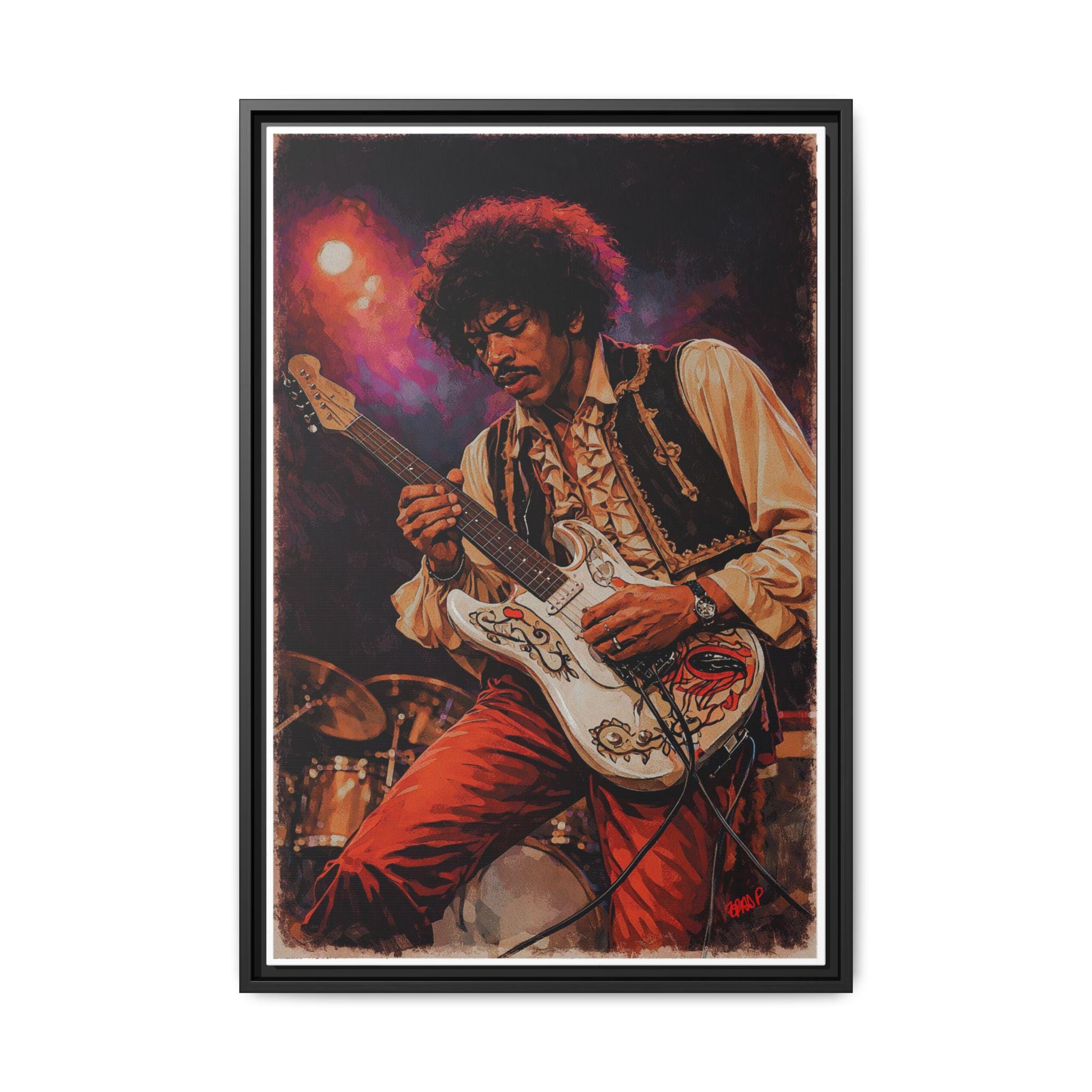 In this kinetic portrait, Hendrix bends sound into liberation. His guitar becomes both weapon and prayer — slicing through silence, distortion, and imposed limits. The motion, heat, and layered textures capture not performance, but possession: the moment when history moves through the body. This work honors Black music as resistance technology — a force that fractures constraint and reassembles possibility.